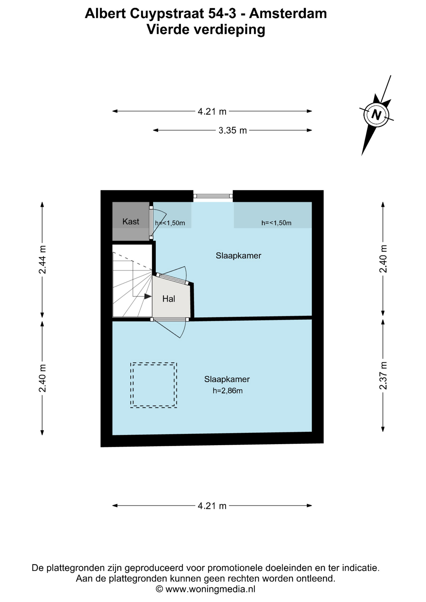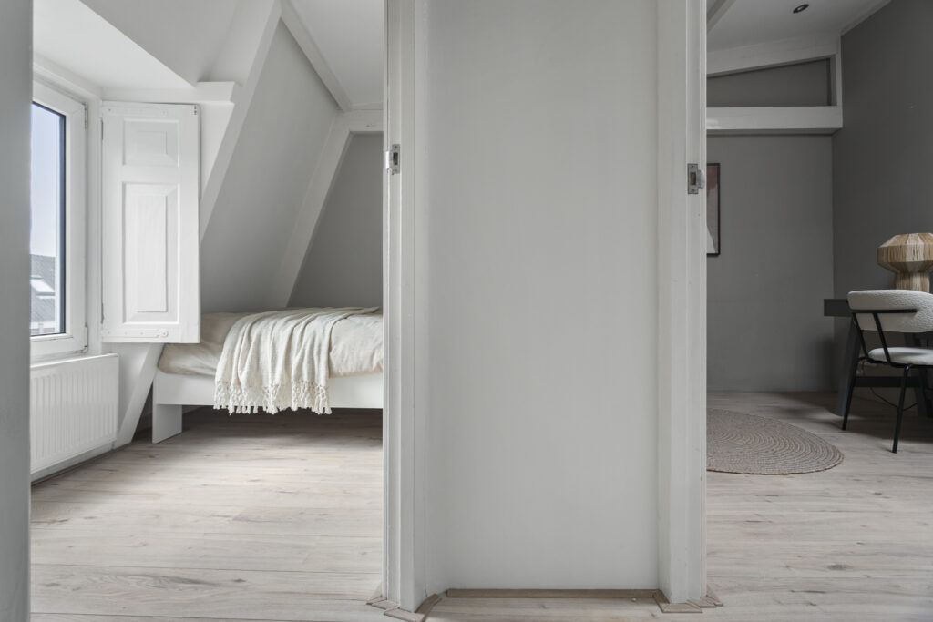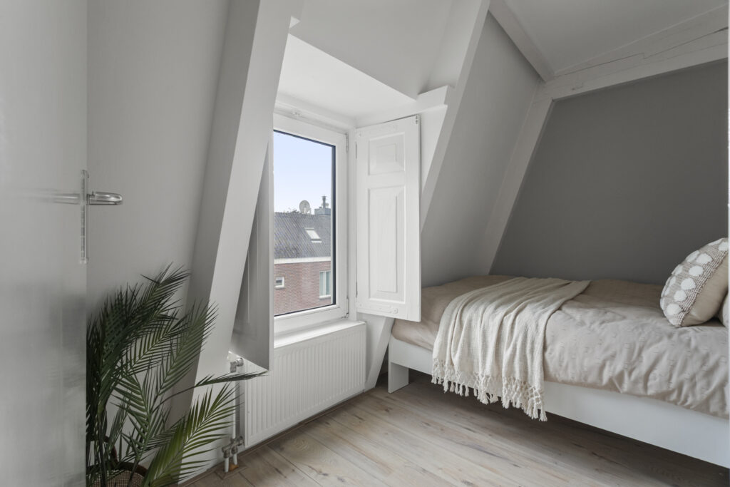 Via de trap in de woning bereikt u de overloop van de vierde verdieping. Hier vindt u twee goede, volwaardige slaapkamers met plek voor een tweepersoonsbed en kledingkast. Daarnaast heeft de woning ook nog een praktische eigen berging op deze etage.