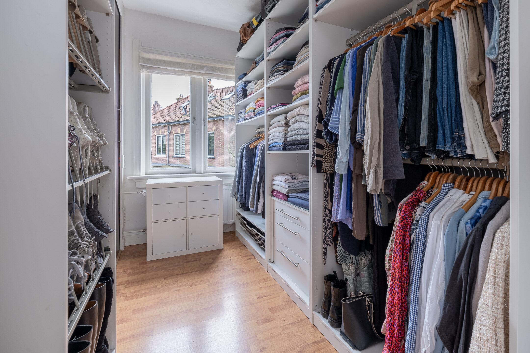 Eerste verdieping: overloop met toegang tot drie slaapkamers, waarvan één momenteel in gebruik is als inloopkast. De andere twee slaapkamers zijn ruim van formaat. De slaapkamer aan de voorzijde geeft toegang tot een mooi balkon. De badkamer is voorzien van een wc, wastafel en inloopdouche.