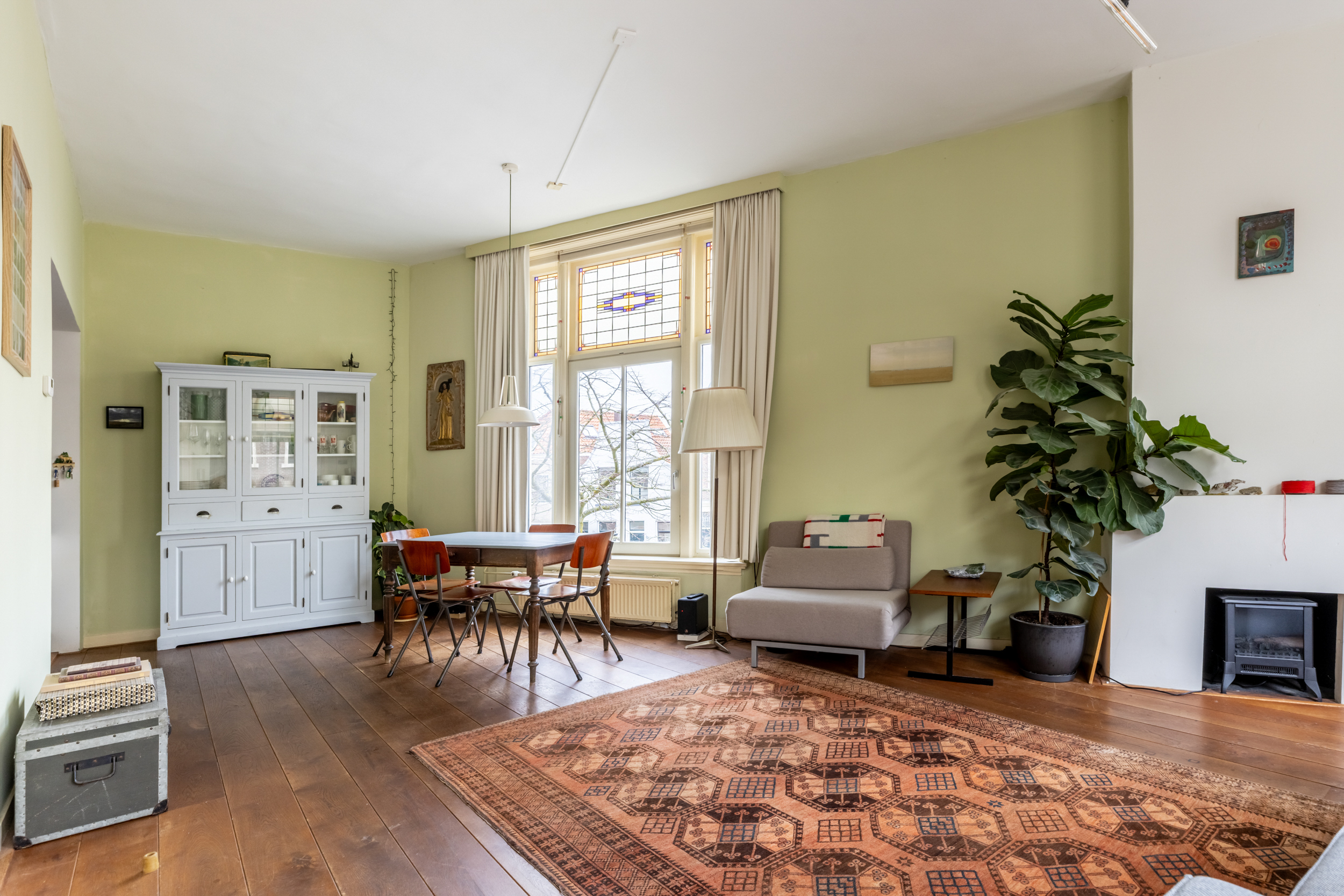 Antoniestraat 65 Rood is a charming 3-room apartment of approximately 96 m², spread over the first and second floors of a characteristic building from 1885. The corner location and the many large windows provide exceptional light and a feeling of space, while the location is surprisingly quiet. Authentic elements such as the wooden floors are visible and add atmosphere and character. With a spacious living room, a bedroom with the possibility of creating a second room and an active owners’ association, this is an attractive city apartment in a unique location in Haarlem.
