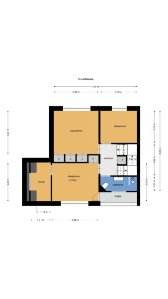 Op de eerste verdieping bevinden zich drie comfortabele slaapkamers, elk voorzien van airconditioning. De moderne badkamer is uitgerust met een inloopdouche, toilet en wastafel. Via de slaapkamer voor is de inpandige balkon/loggia bereikbaar.