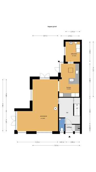 – Bijkeuken met cv-opstelling, wasmachine- en drogeraansluiting