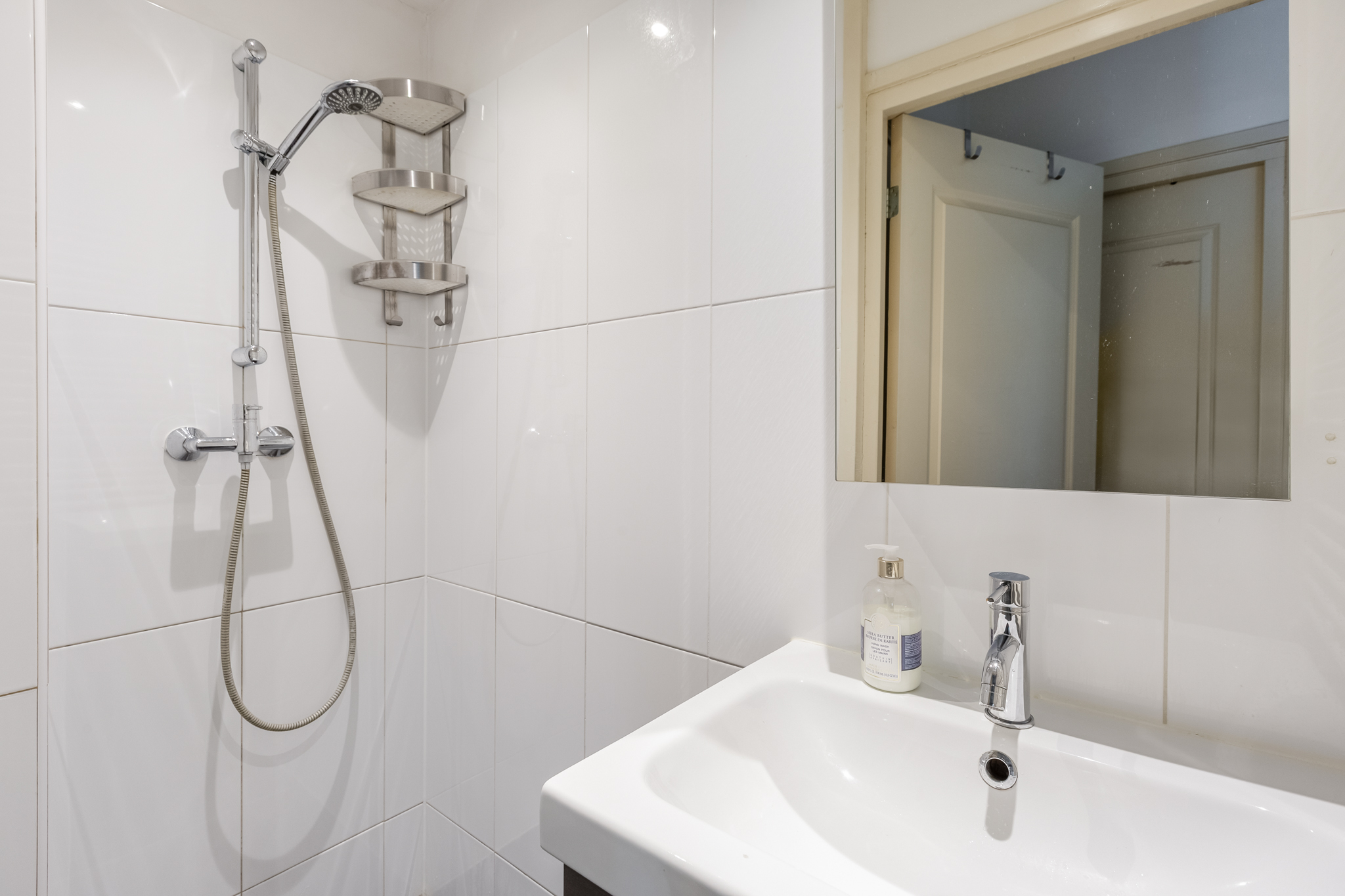 Aan de achterzijde liggen de master bedroom en de tweede slaapkamer. De master bedroom beschikt over openslaande deuren naar het balkon, waar je in alle rust kunt genieten van de buitenlucht. De badkamer is modern afgewerkt en voorzien van een douche, wastafelmeubel en toilet. De woning is rondom voorzien van HR++ glas, beschikt over vloerisolatie, een vloer uit 2022 en is drie jaar geleden volledig geschilderd