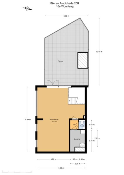 10e Woonlaag: zeer riante living met grote raampartijen en openslaande deuren naar dakterras, tussenhal met toegang naar modern zwevend toilet met fontein en inpandige berging/technische ruimte met wasmachine aansluiting