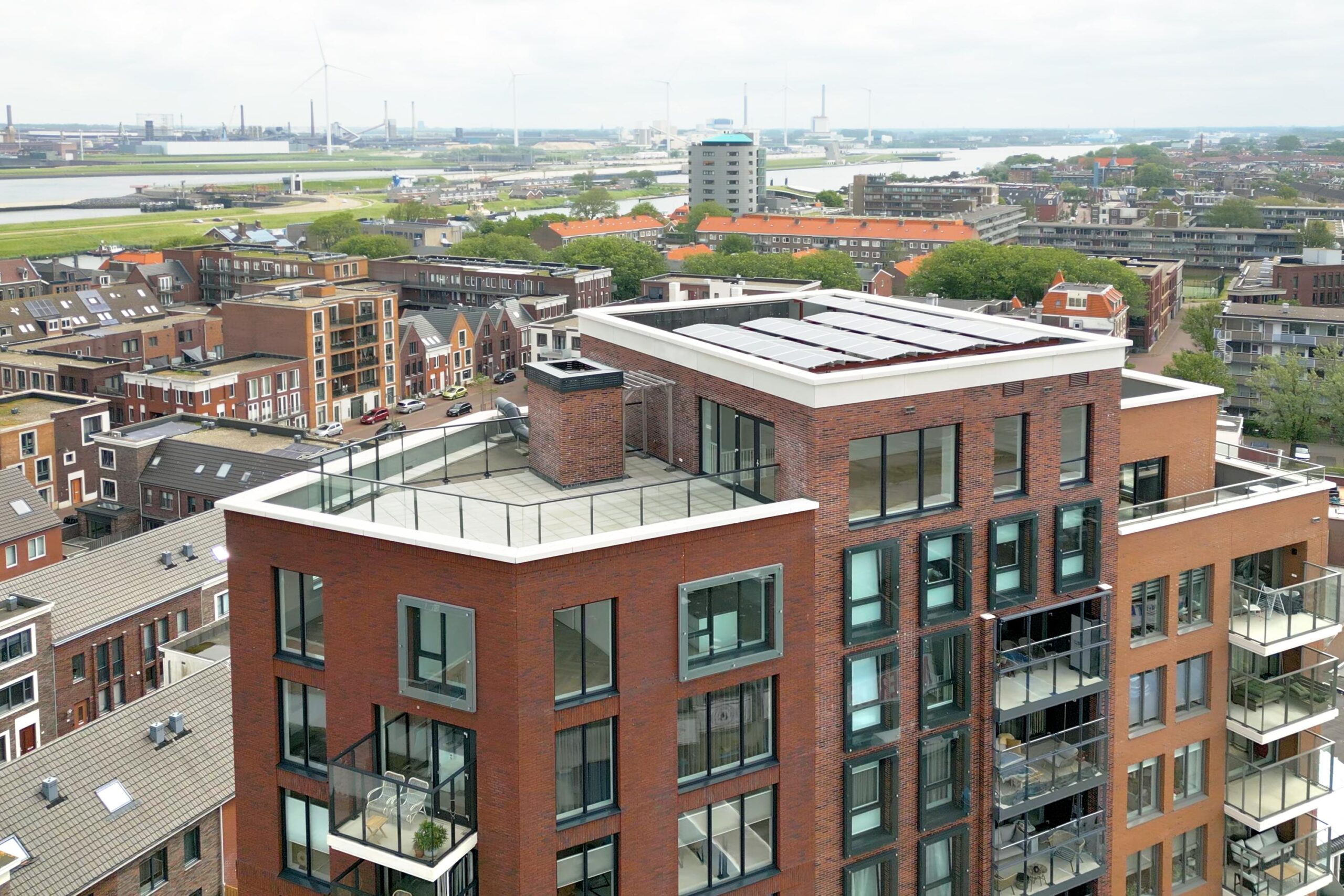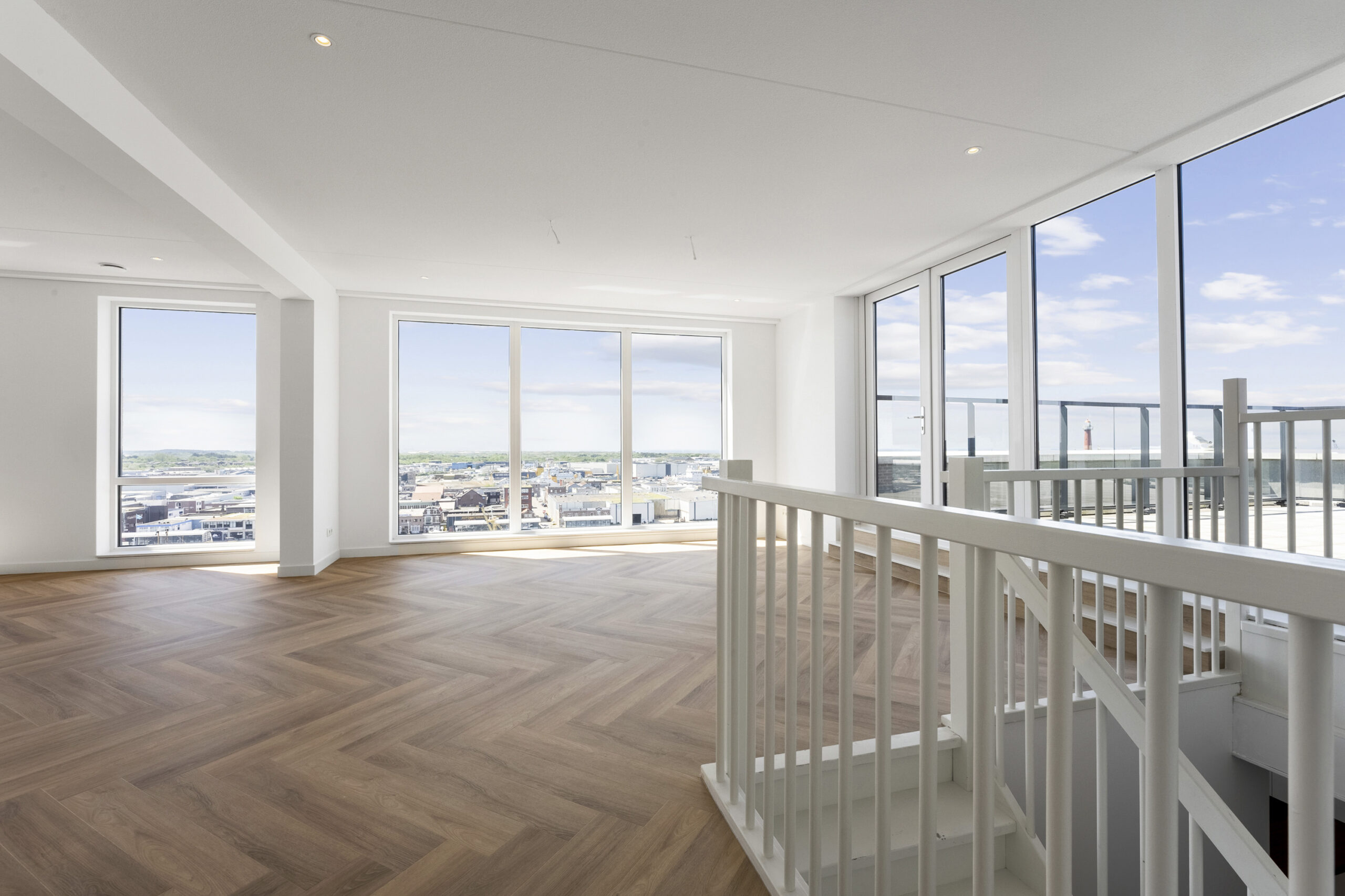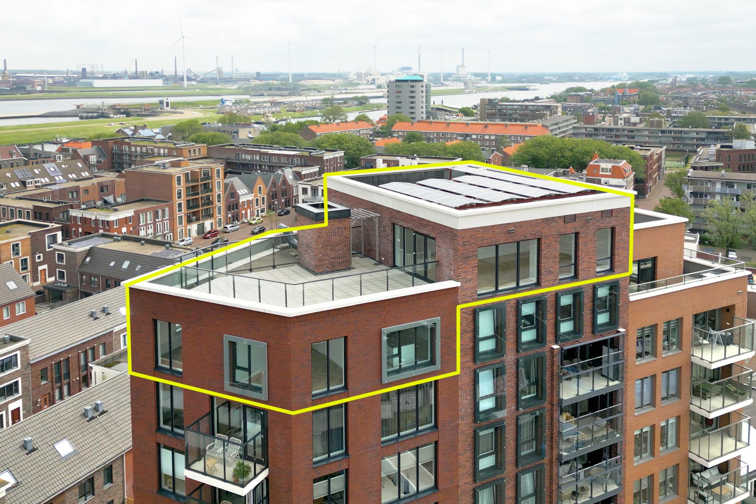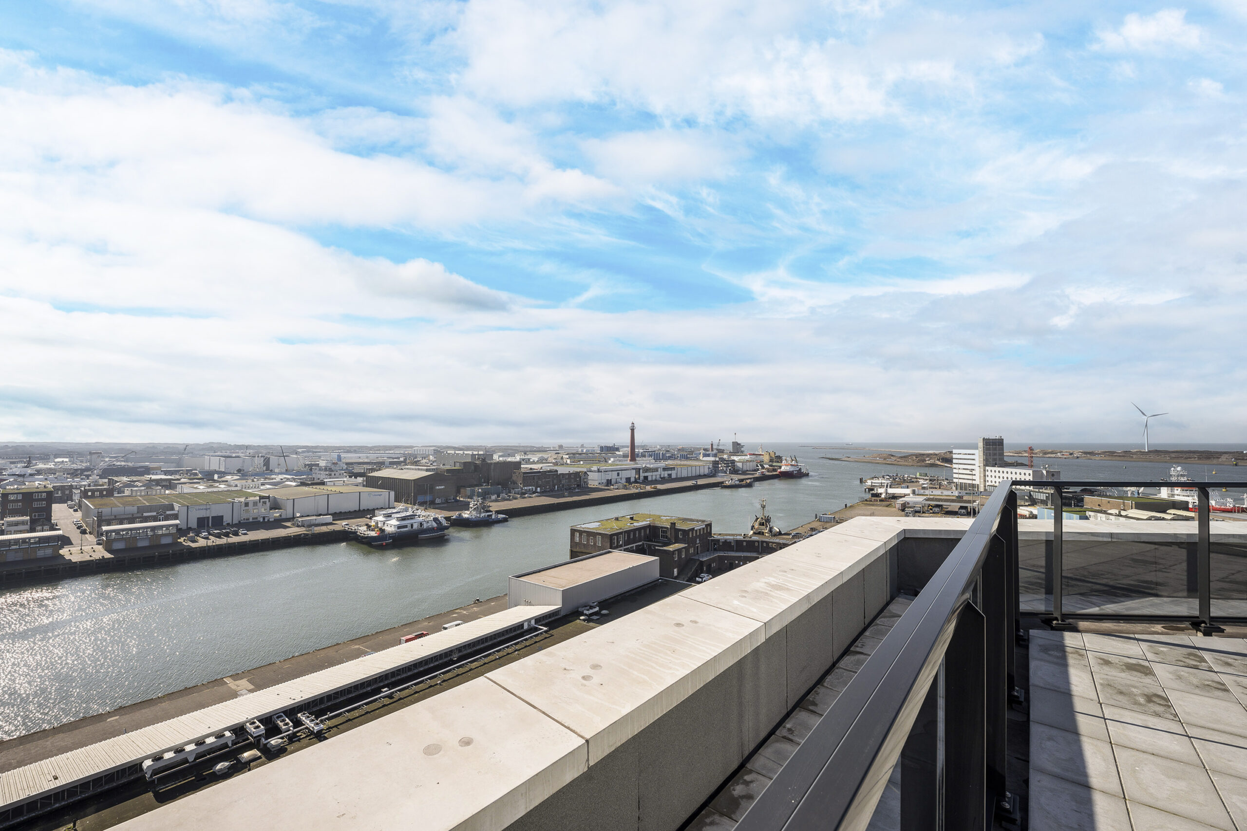 Met een magnifiek vrij uitzicht vind je in een zeer recent gebouwd appartementencomplex dit riante penthouse voorzien van een groot zonnig dakterras en 2 eigen parkeerplaatsen. Vanuit de vele en grote raampartijen heb je een geweldig uitzicht grotendeels over IJmuiden, de zee, de havens met vele vissersboten en o.a. de ferry naar Engeland, de sluizen met het Noordzeekanaal, de duinen naar Zandvoort en verder. Het appartement verdeeld over 2 woonlagen heeft een woonoppervlakte van maar liefst 186 m2 en is voorzien van grote raampartijen waardoor het binnen heerlijk licht is en je vanuit elk vertrek een uniek uitzicht hebt. Het bestaat o.a. uit een riante living met toegang naar het terras, een spiksplinternieuwe woonkeuken, 3 slaapkamers, 2 badkamers en 2 separate toiletten. Indien gewenst is er de ruimte om eventueel een interne lift in het appartement te plaatsen. Het grote zonnige dakterras (ca. 57 m2) met eveneens een geweldig panoramisch uitzicht is voorzien van elektra en een buitenkraan zodat er een buitenkeuken geplaatst kan worden. Het terras is op het noordwesten gesitueerd waardoor je volop kan genieten van de middag- en avondzon totdat hij onder gaat.