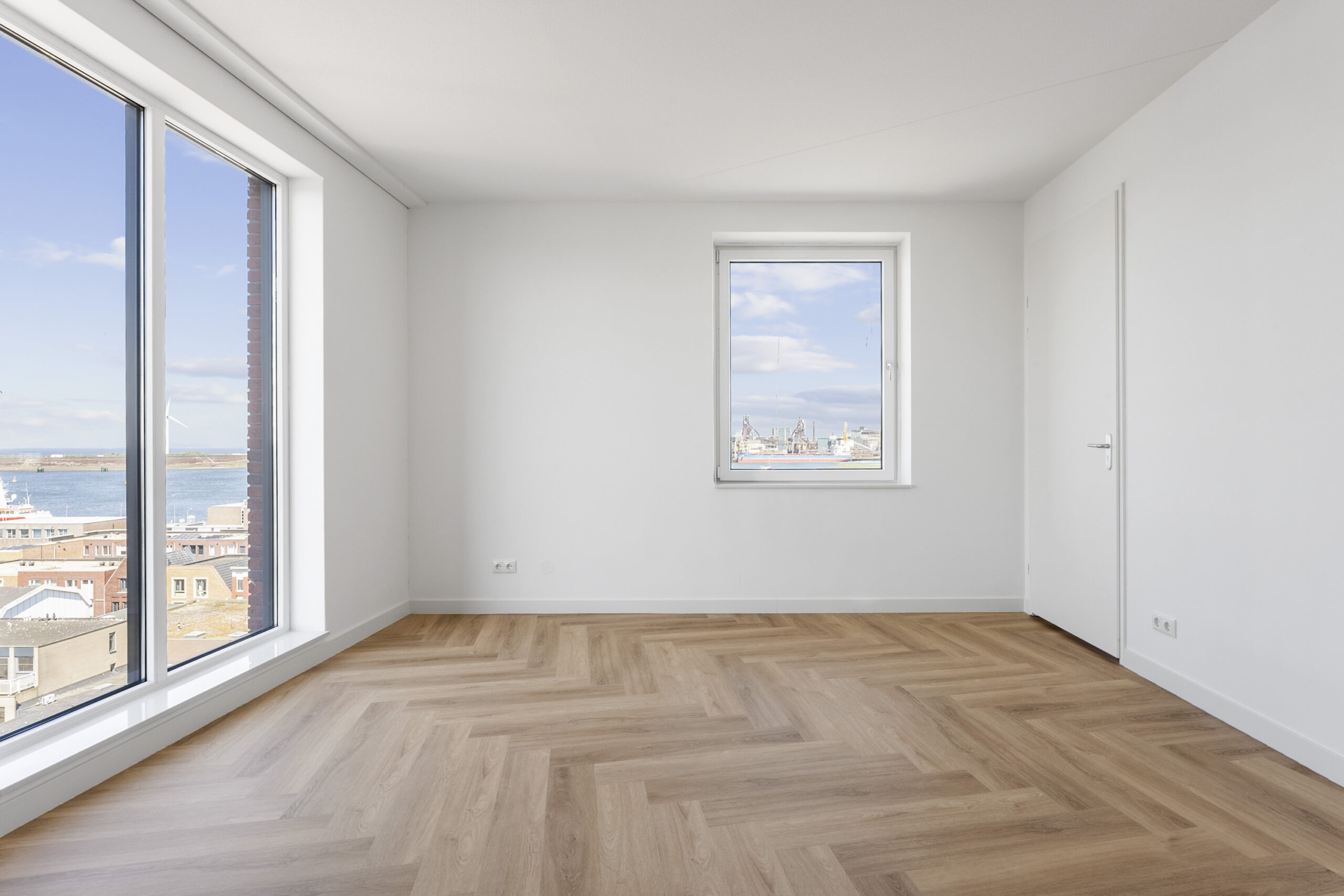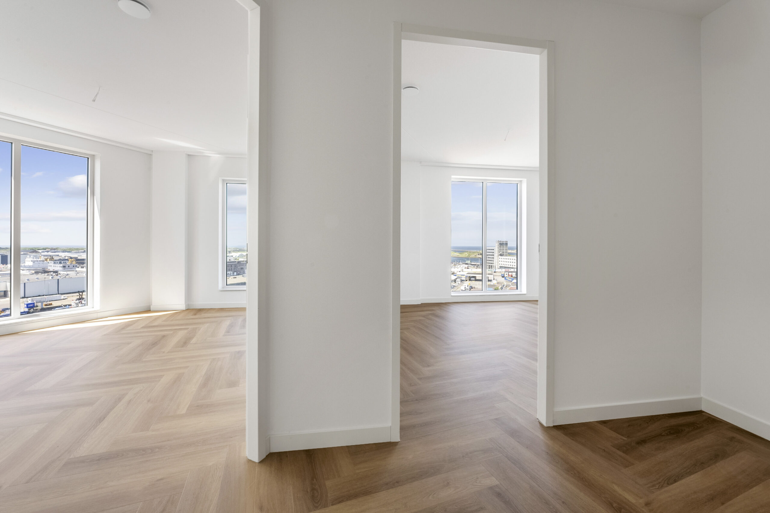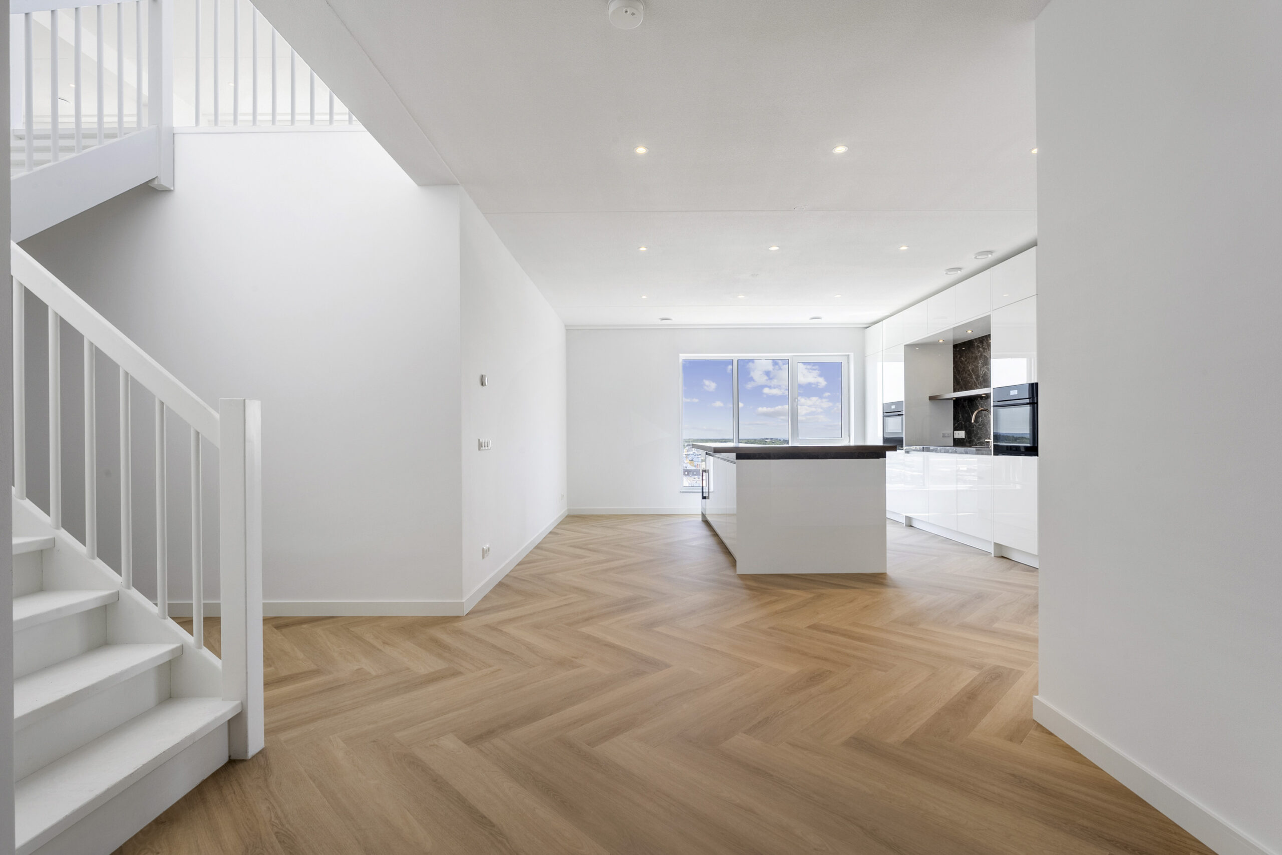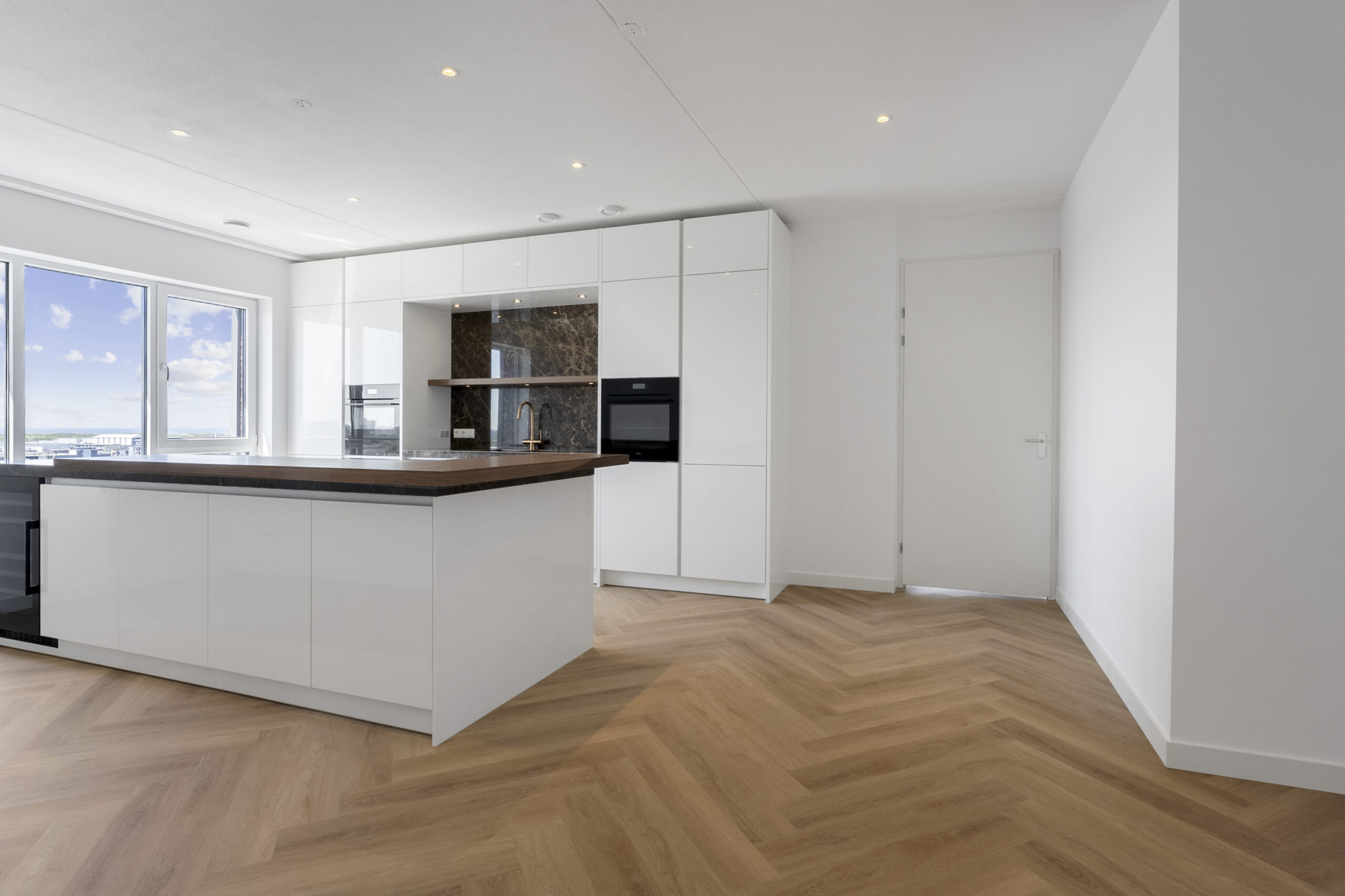 Met een magnifiek vrij uitzicht vind je in een zeer recent gebouwd appartementencomplex dit riante penthouse voorzien van een groot zonnig dakterras en 2 eigen parkeerplaatsen. Vanuit de vele en grote raampartijen heb je een geweldig uitzicht grotendeels over IJmuiden, de zee, de havens met vele vissersboten en o.a. de ferry naar Engeland, de sluizen met het Noordzeekanaal, de duinen naar Zandvoort en verder. Het appartement verdeeld over 2 woonlagen heeft een woonoppervlakte van maar liefst 186 m2 en is voorzien van grote raampartijen waardoor het binnen heerlijk licht is en je vanuit elk vertrek een uniek uitzicht hebt. Het bestaat o.a. uit een riante living met toegang naar het terras, een spiksplinternieuwe woonkeuken, 3 slaapkamers, 2 badkamers en 2 separate toiletten. Indien gewenst is er de ruimte om eventueel een interne lift in het appartement te plaatsen. Het grote zonnige dakterras (ca. 57 m2) met eveneens een geweldig panoramisch uitzicht is voorzien van elektra en een buitenkraan zodat er een buitenkeuken geplaatst kan worden. Het terras is op het noordwesten gesitueerd waardoor je volop kan genieten van de middag- en avondzon totdat hij onder gaat.