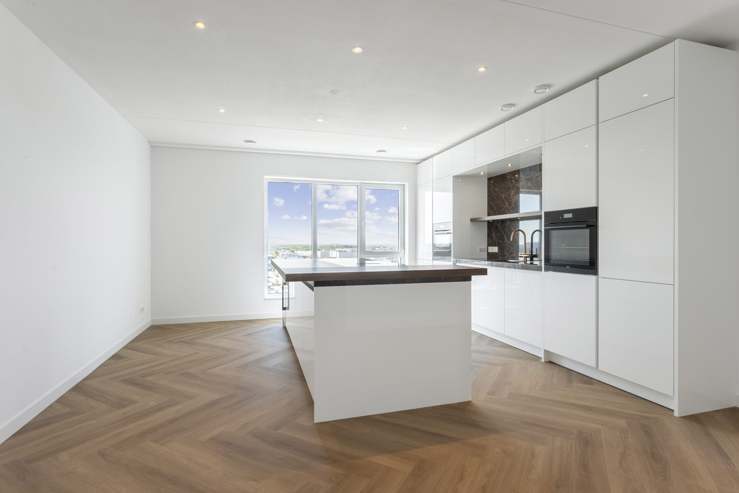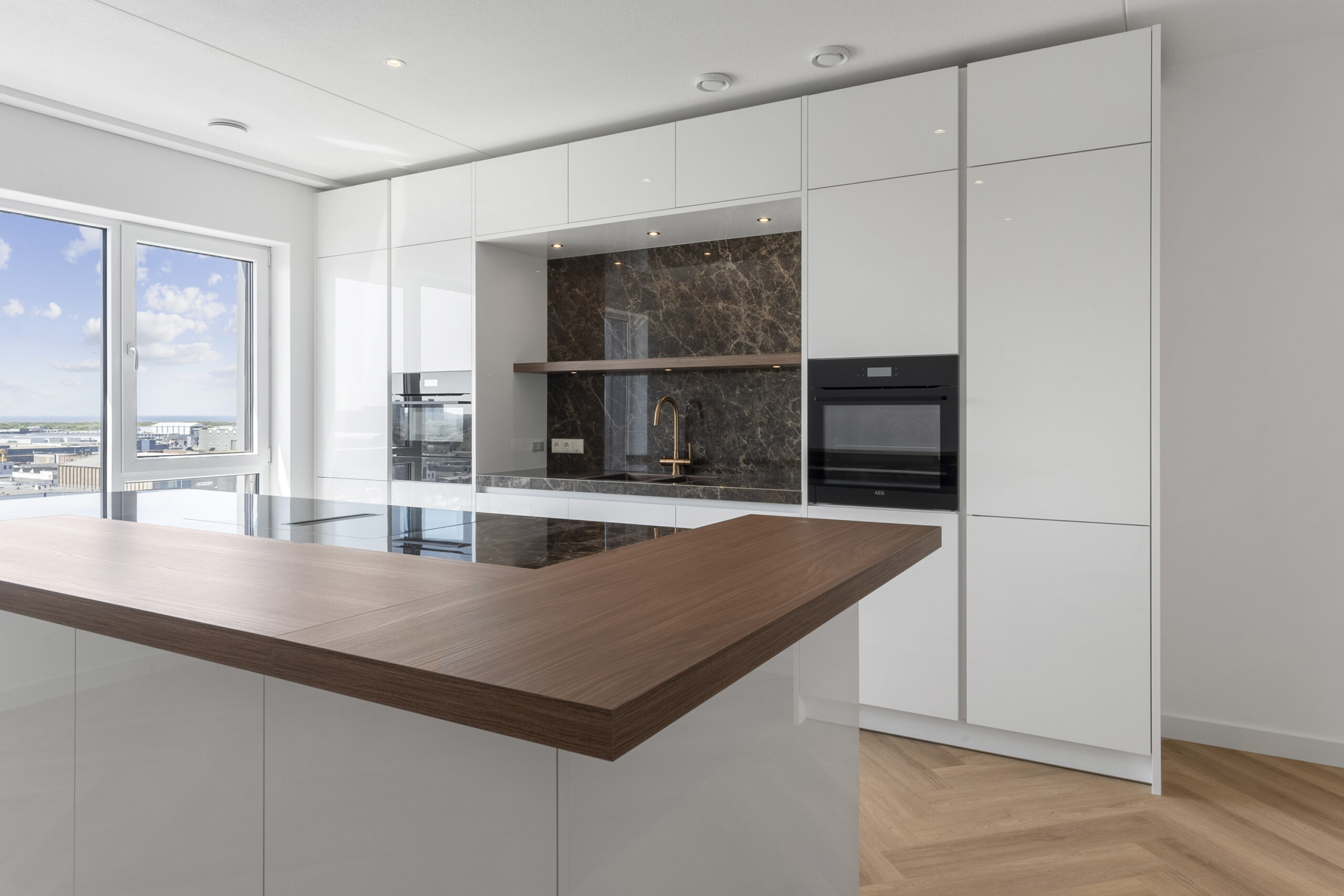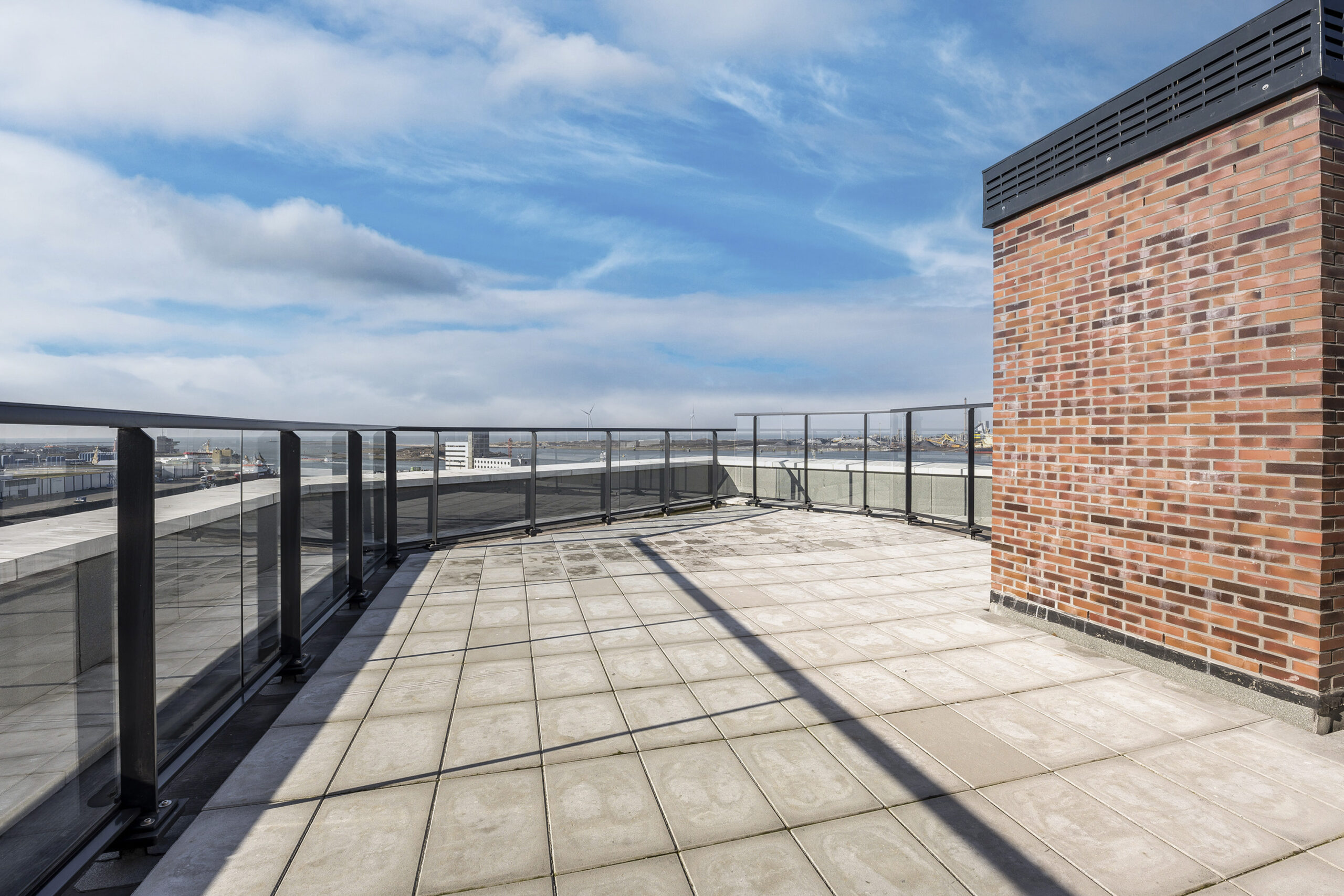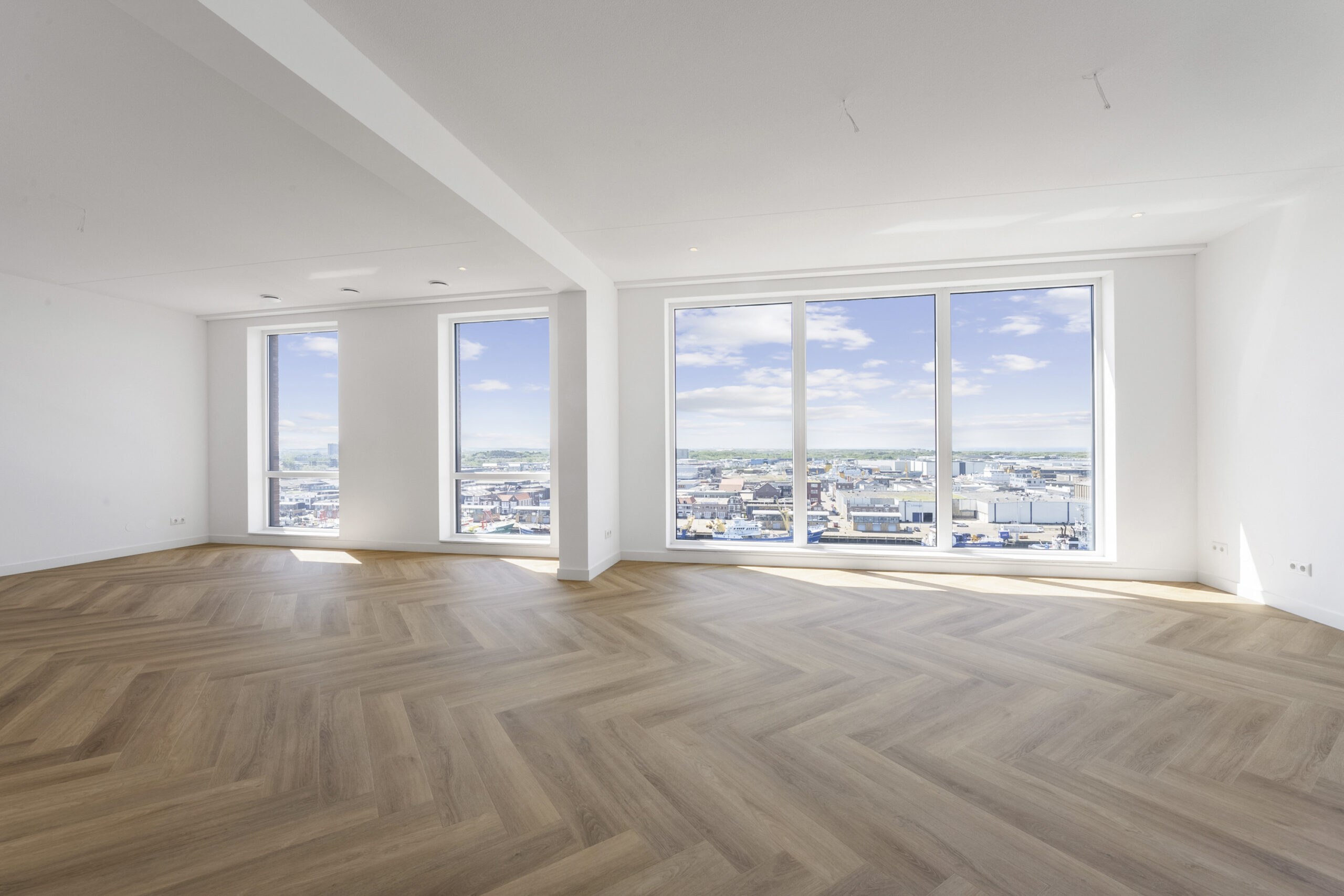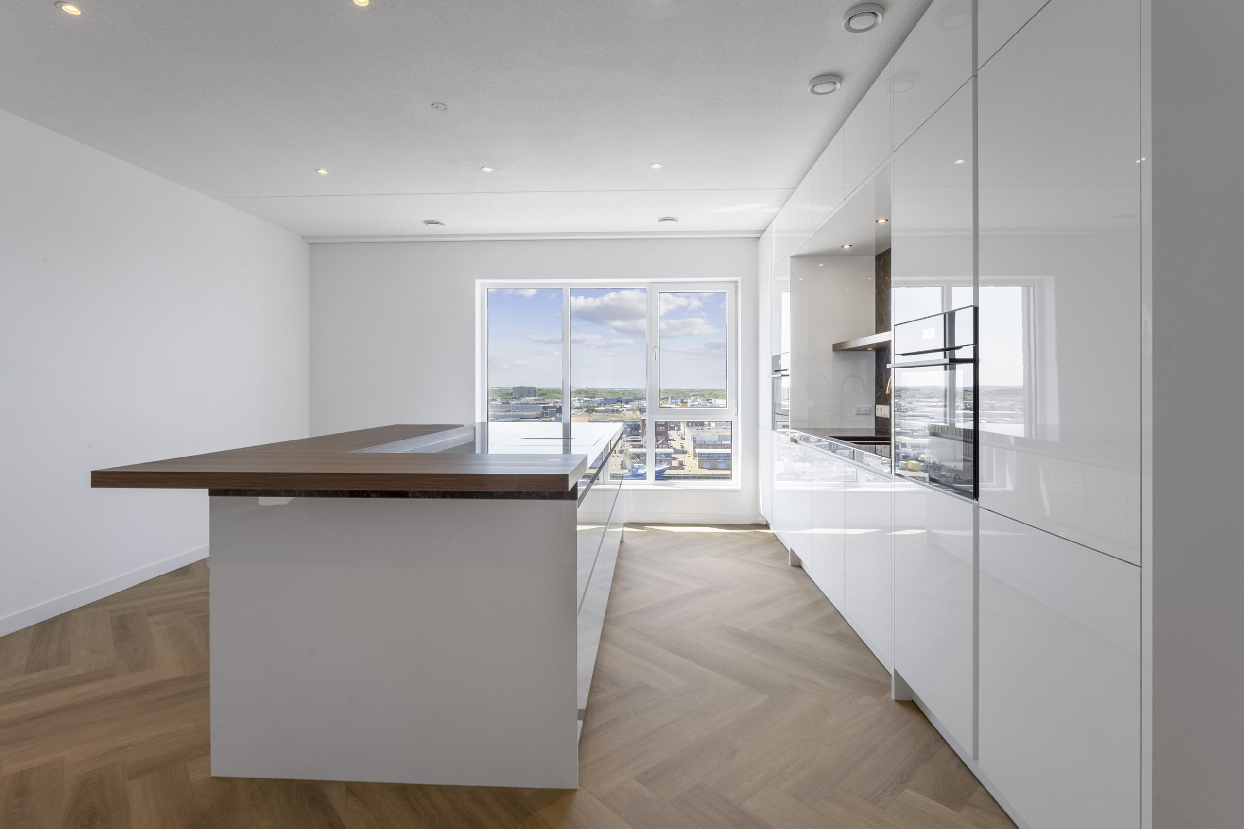 Met een magnifiek vrij uitzicht vind je in een zeer recent gebouwd appartementencomplex dit riante penthouse voorzien van een groot zonnig dakterras en 2 eigen parkeerplaatsen. Vanuit de vele en grote raampartijen heb je een geweldig uitzicht grotendeels over IJmuiden, de zee, de havens met vele vissersboten en o.a. de ferry naar Engeland, de sluizen met het Noordzeekanaal, de duinen naar Zandvoort en verder. Het appartement verdeeld over 2 woonlagen heeft een woonoppervlakte van maar liefst 186 m2 en is voorzien van grote raampartijen waardoor het binnen heerlijk licht is en je vanuit elk vertrek een uniek uitzicht hebt. Het bestaat o.a. uit een riante living met toegang naar het terras, een spiksplinternieuwe woonkeuken, 3 slaapkamers, 2 badkamers en 2 separate toiletten. Indien gewenst is er de ruimte om eventueel een interne lift in het appartement te plaatsen. Het grote zonnige dakterras (ca. 57 m2) met eveneens een geweldig panoramisch uitzicht is voorzien van elektra en een buitenkraan zodat er een buitenkeuken geplaatst kan worden. Het terras is op het noordwesten gesitueerd waardoor je volop kan genieten van de middag- en avondzon totdat hij onder gaat.