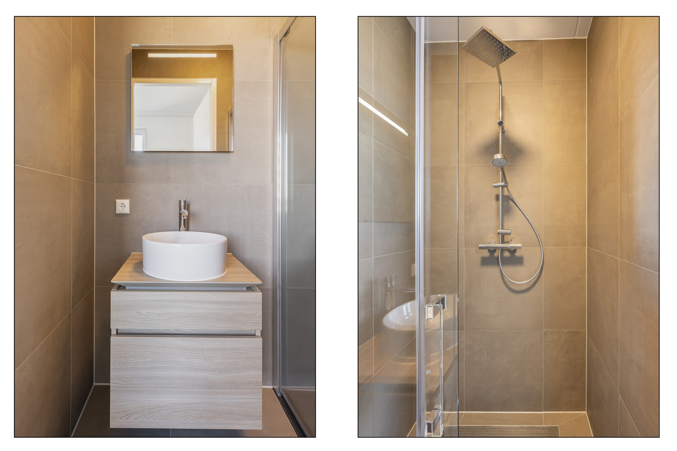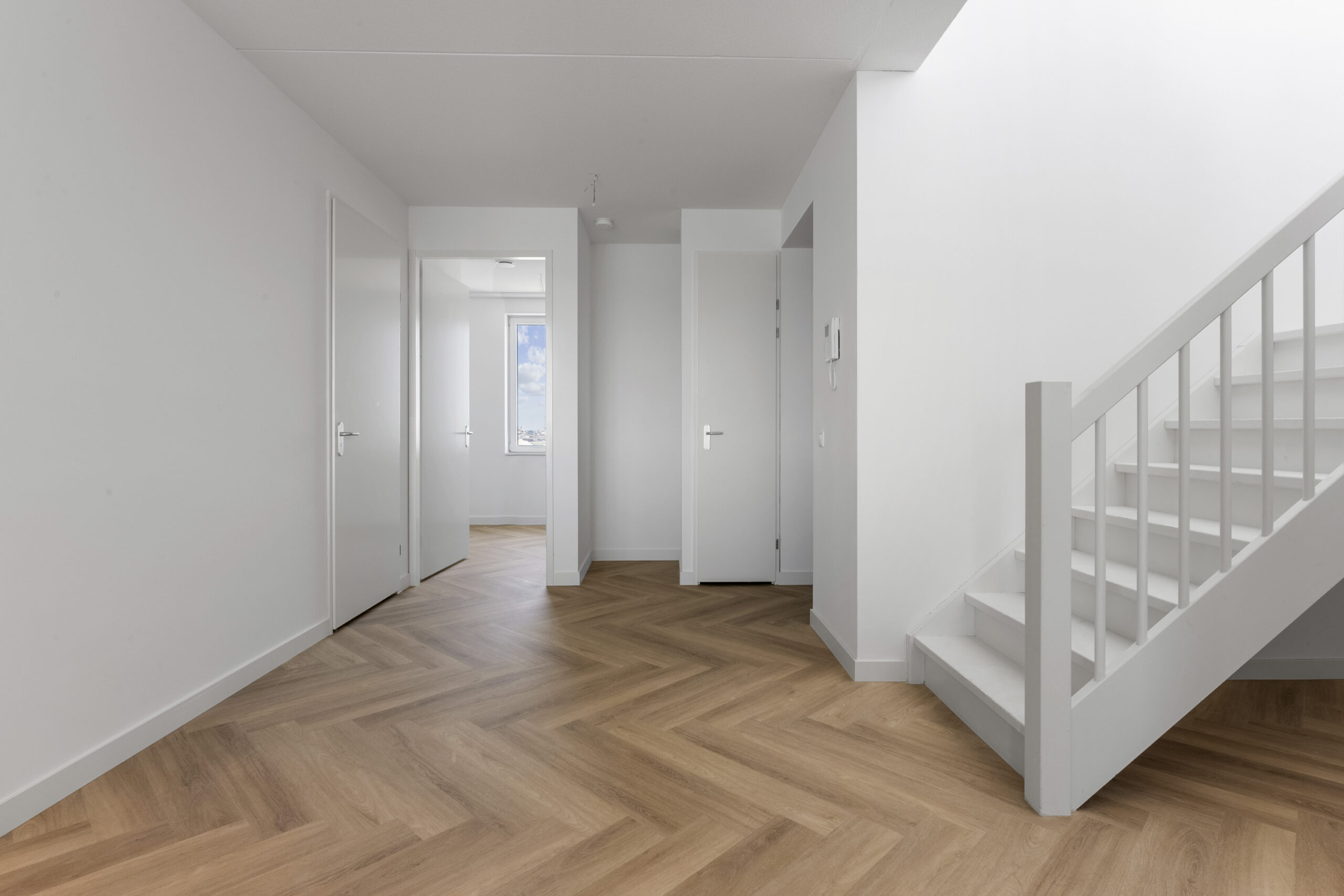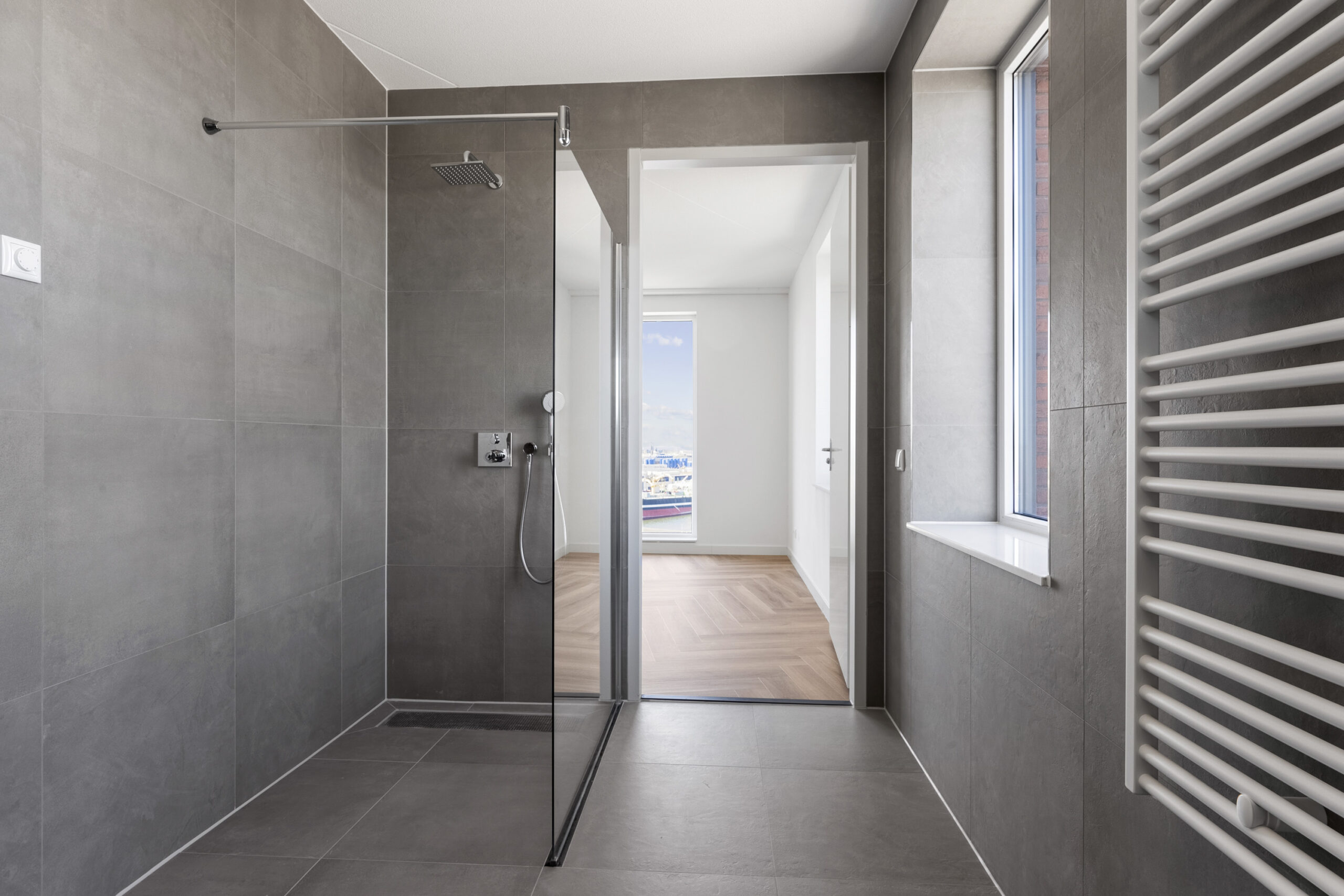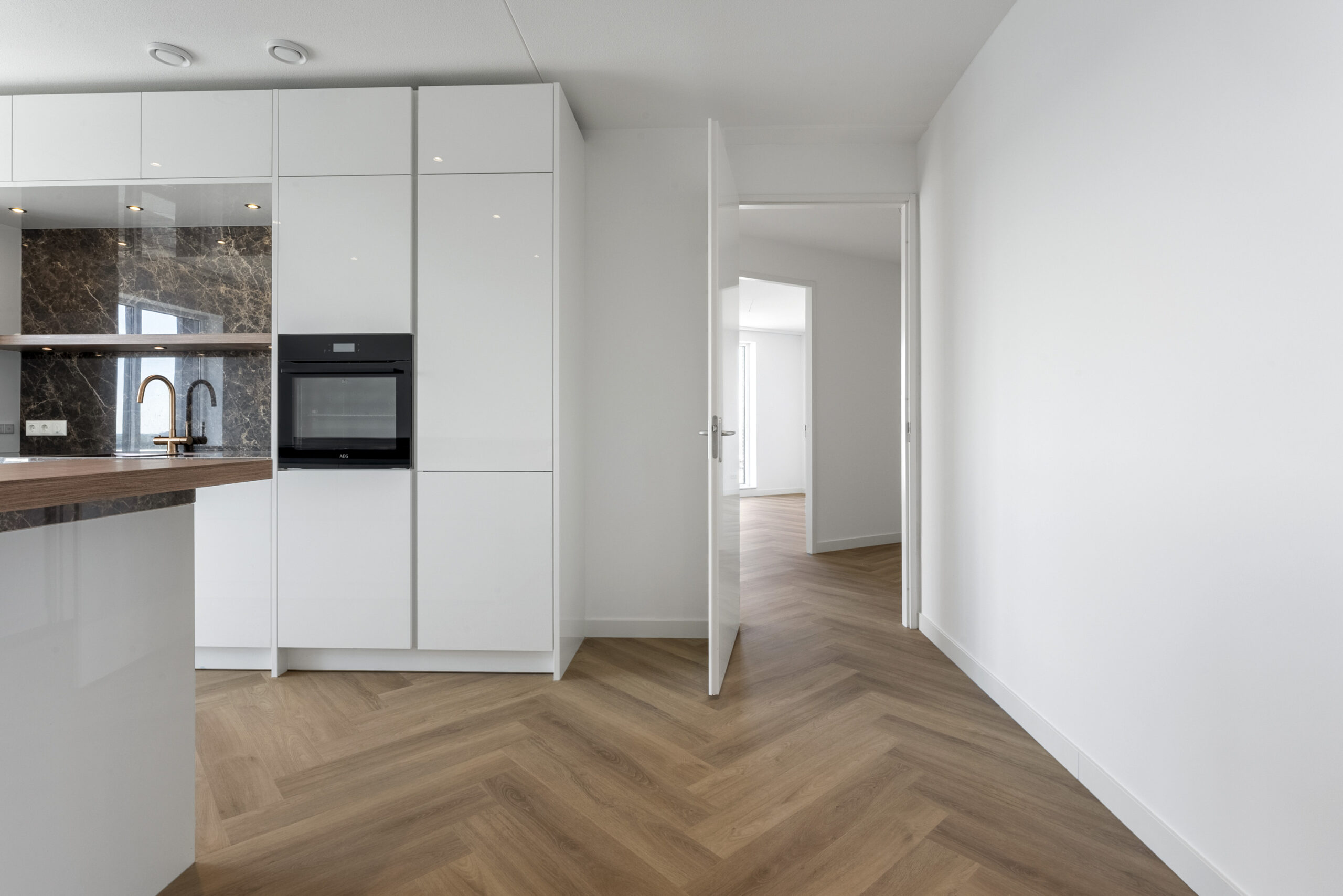 9e Woonlaag: entree appartement, hal met garderobenis en modern zwevend toilet met fontein, ruime spiksplinternieuwe woonkeuken en voorzien van grote raampartij, royale tussenhal voorzien van kast met technische installaties, ouderslaapkamer met groot raampartij, extra zijraam en tevens toegang naar moderne badkamer voorzien van inloopdouche met handdouche en rainshower, meubel met dubbele wastafel en zwevend toilet, 2e slaapkamer met grote raampartijen, 3e slaapkamer met toegang naar eigen moderne badkamer voorzien van wastafelmeubel en inloopdouche met handdouche en rainshower, via woonkeuken trap naar…..