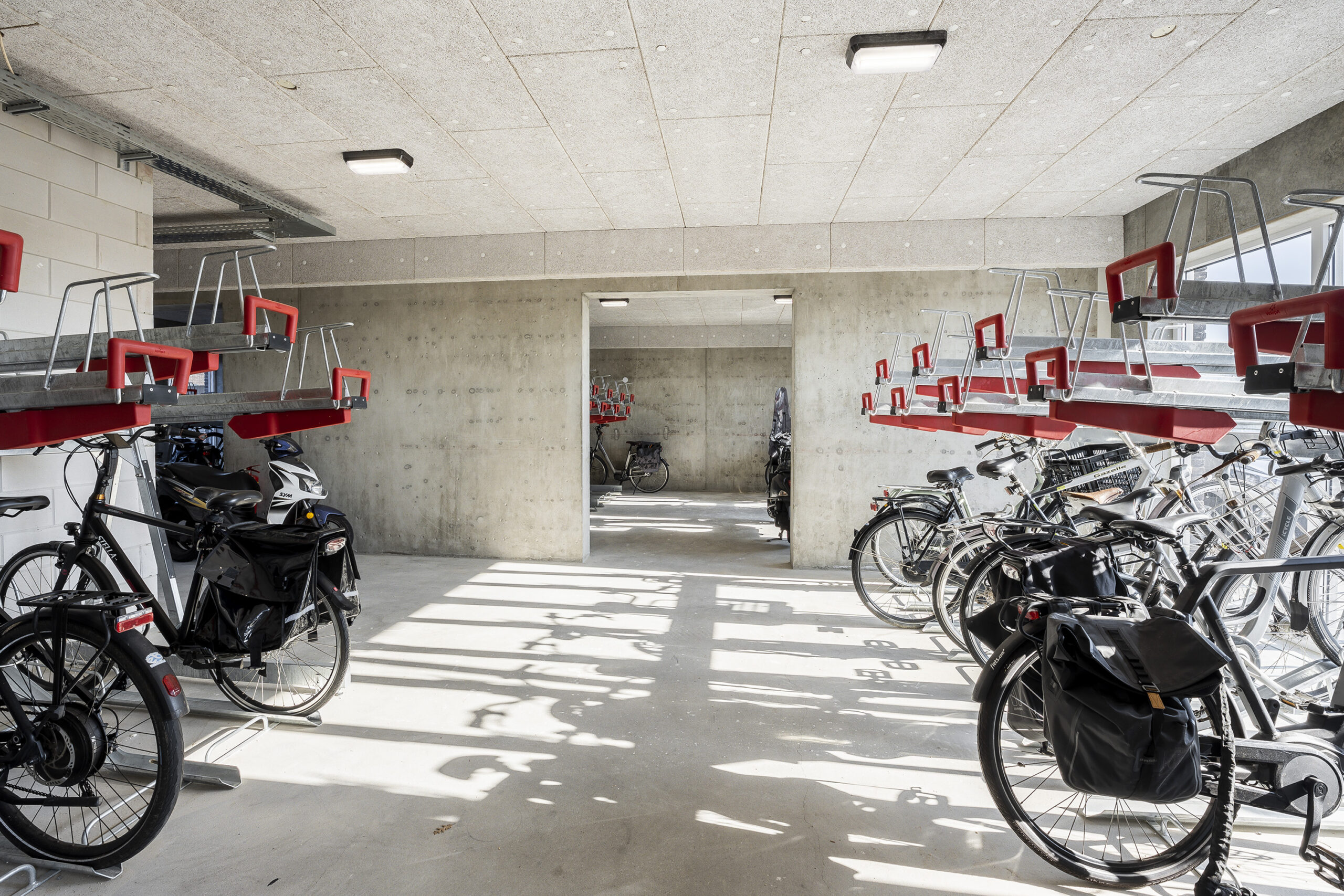 Parterre: brievenbussen en bellentableau met videofooninstallatie, afgesloten gemeenschappelijke hal met trappenhuis, lift en toegang naar gemeenschappelijke fietsenberging