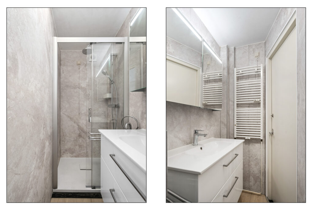 2e Verdieping: entree appartement, ruime hal met intercom en modern zwevend toilet met fontein, zeer royale en lichte woonkamer met extra zijraam, schilderij ophangsysteem, deur naar zonnig balkon op het noordwesten en deur naar balkon op het zuidoosten, 2 ruime slaapkamers met inbouwkast, moderne keuken voorzien van diverse inbouwapparatuur, wasmachine aansluiting en deur naar balkon met bergkast voorzien van boiler, moderne badkamer voorzien van inloopdouche met rainshower en handdouche, wastafelmeubel, handdoekradiator en mechanische ventilatie