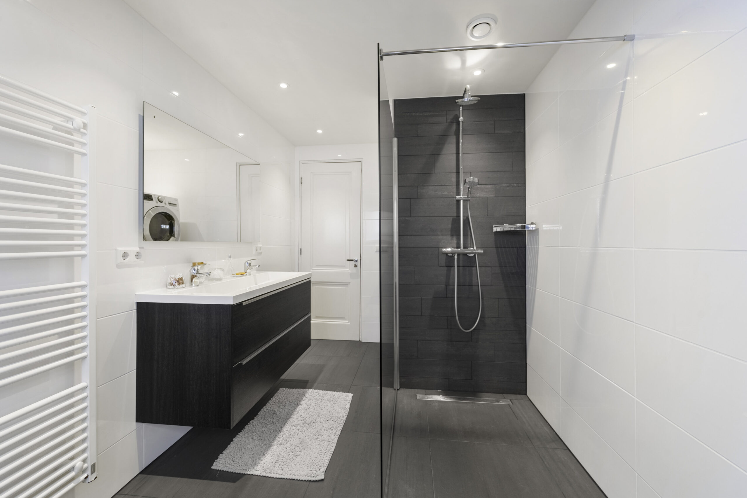 2e Verdieping: overloop met modern zwevend toilet, slaapkamer aan voorzijde, slaapkamer aan achterzijde met extra dakkapel aan zijkant, zijkamer aan achterzijde, moderne badkamer voorzien van ligbad, inloopdouche met rainshower en handdouche, meubel met dubbele wastafel, handdoekradiator en wasmachine/droger aansluiting, via overloop vlizotrap naar….