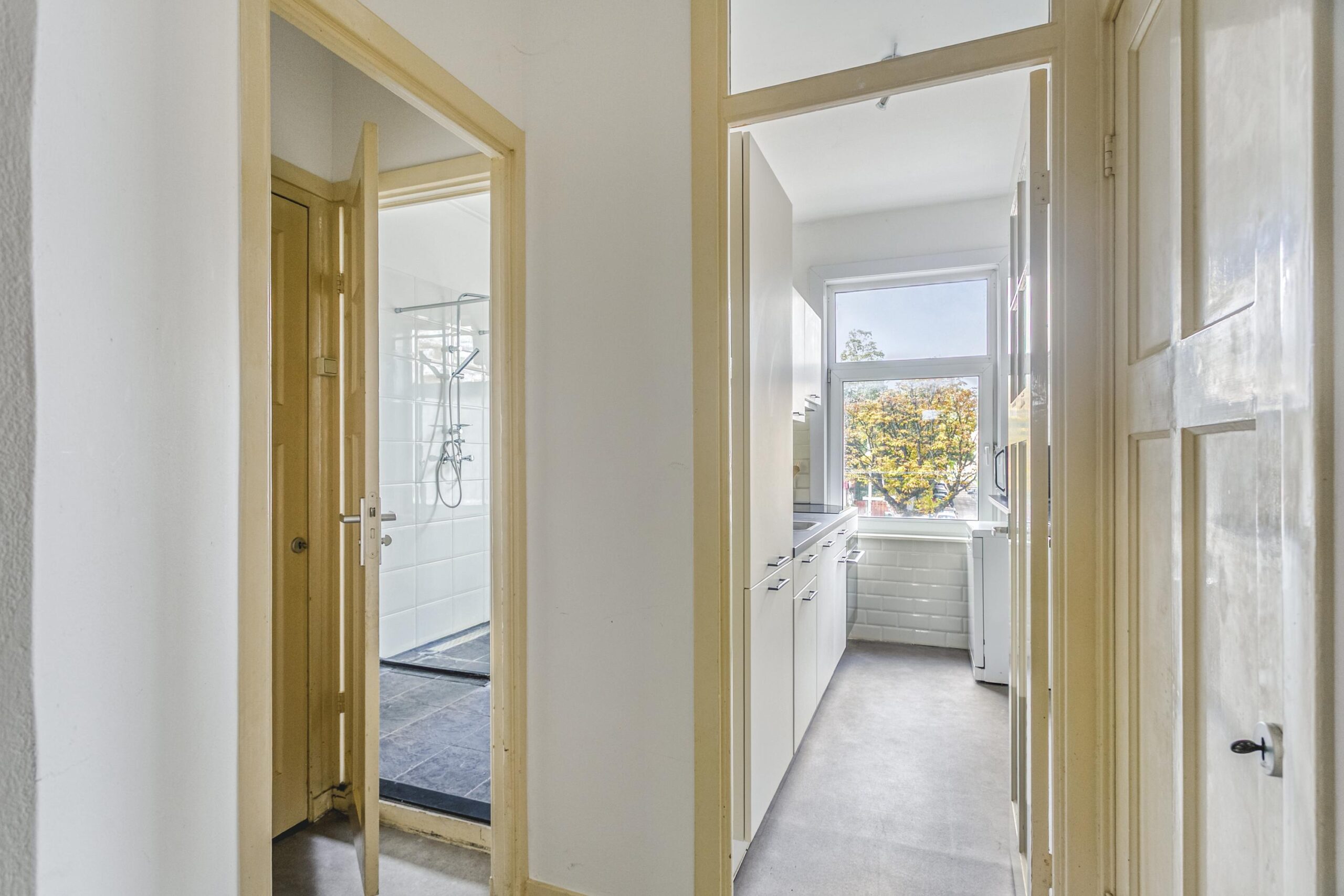 Via the shared entrance, you reach the apartment on the first floor. You enter into a hallway that provides access to all rooms. There are also two built-in closets in the hallway, practical and space-saving.