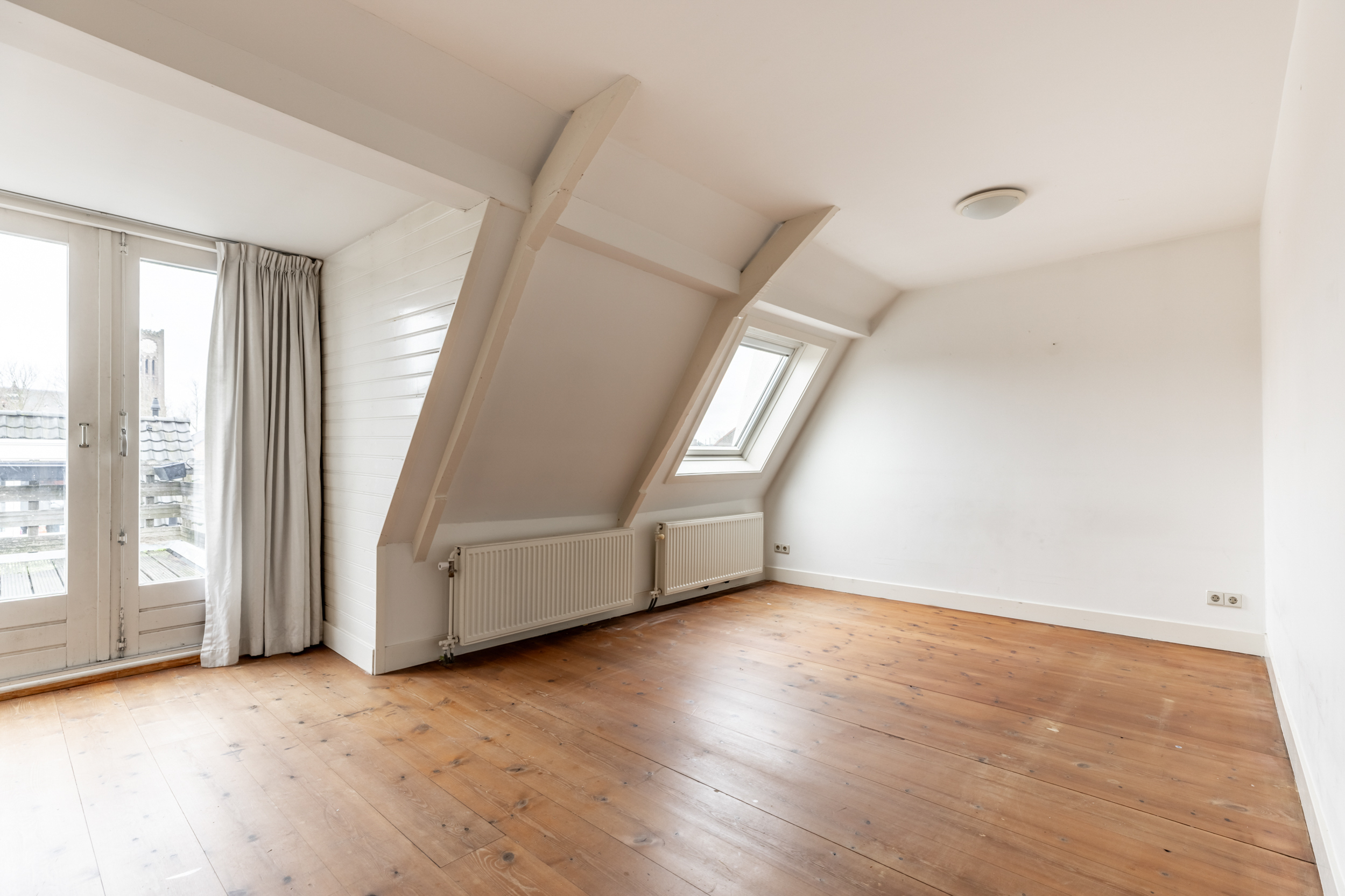 PUUR* living on the edge of the city centre in this very spacious and bright double upper floor apartment with three bedrooms and a roof terrace. This spacious upper floor apartment has a generous bright living room, a semi-open kitchen and a view of St. Bavo’s Church from the roof terrace. The beautiful Kennemer dunes, the forests of Bloemendaal and the beach of Zandvoort/Bloemendaal are within cycling distance. The motorway to Amsterdam/Schiphol, among other destinations, is also easily accessible. Come and see for yourself and be surprised!