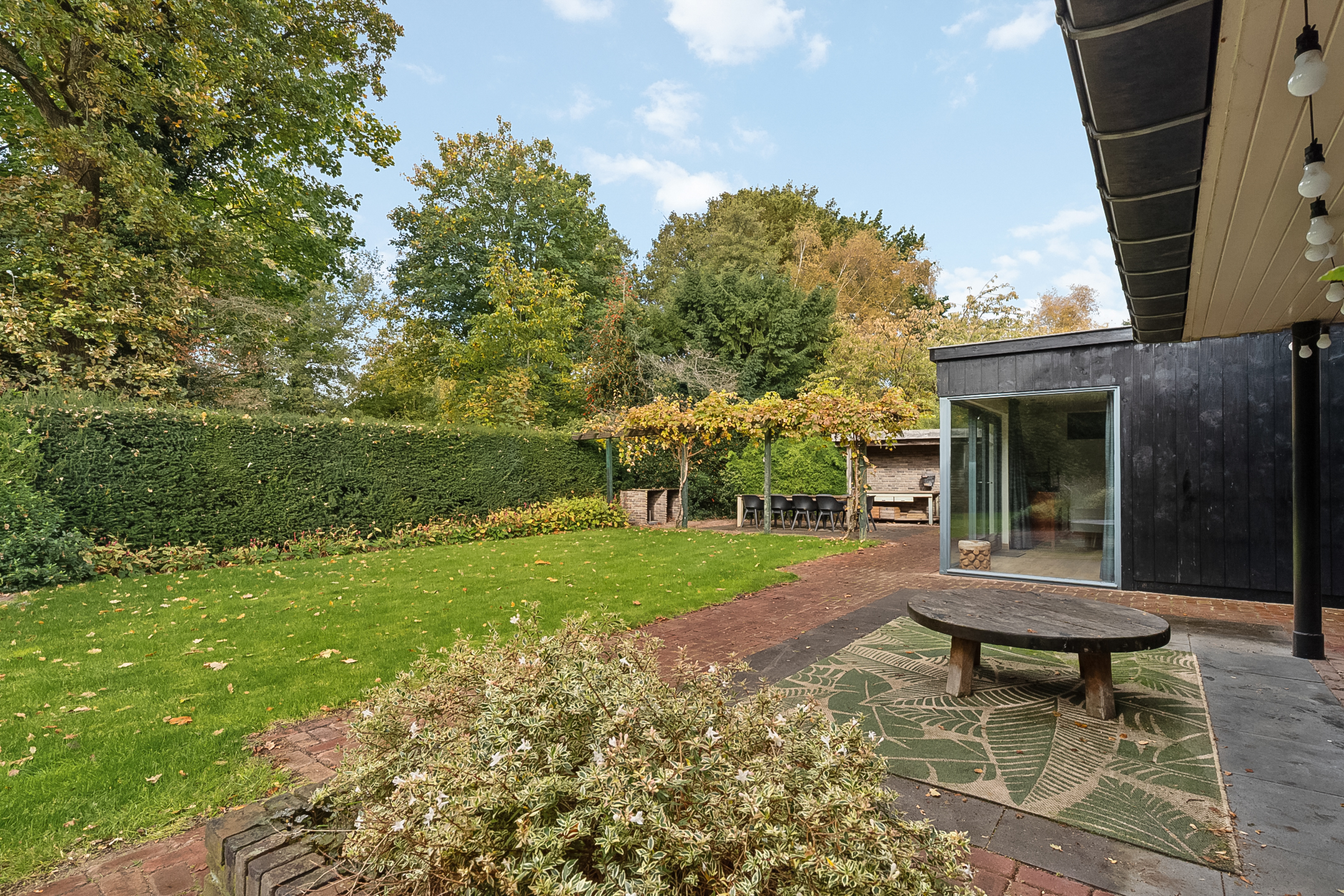 De tuin rondom biedt volop privacy, groen en ruimte. De huidige eigenaren noemen hun huis met een knipoog ‘Toffe Peren’, een verwijzing naar de mooie perenbomen die in de tuin staan. Er is altijd wel een plek in de zon te vinden — of juist een schaduwrijke hoek om te ontspannen. De carport is voorzien van stroom, handig voor het plaatsen en opladen van (elektrische) fietsen onder de overkapping. Op eigen terrein is er ruimte om twee tot drie auto’s te parkeren.