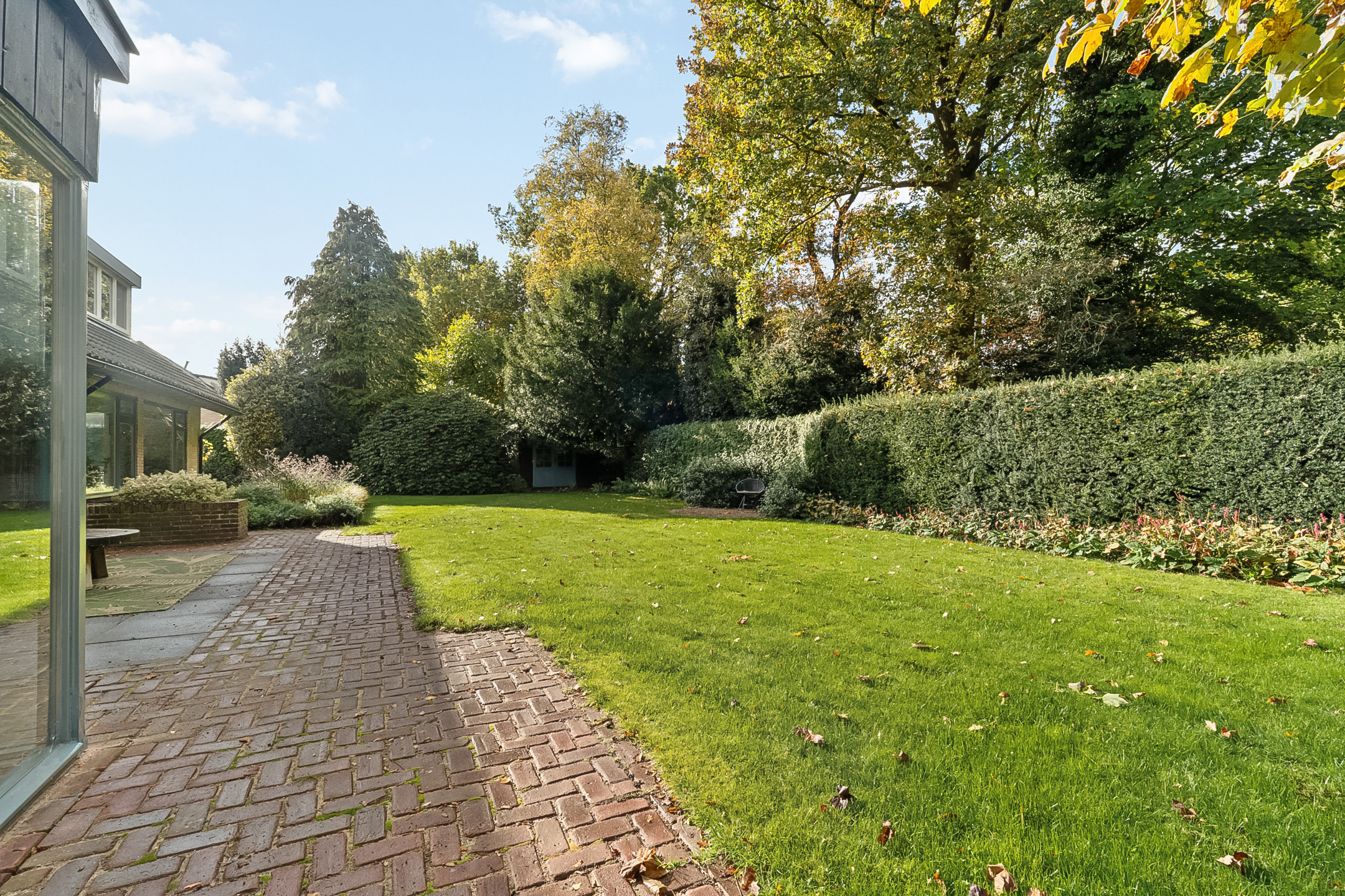 Via een tweede hal met bergruimte is zowel de voor- als achtertuin bereikbaar. In de voormalige dubbele garage is in 2020 een luxe slaap- en badkamer met keukenblok gerealiseerd. Deze ruimte (ca. 36 m²) is uitstekend geschikt als zelfstandige woonunit, gastenverblijf of praktijk aan huis.