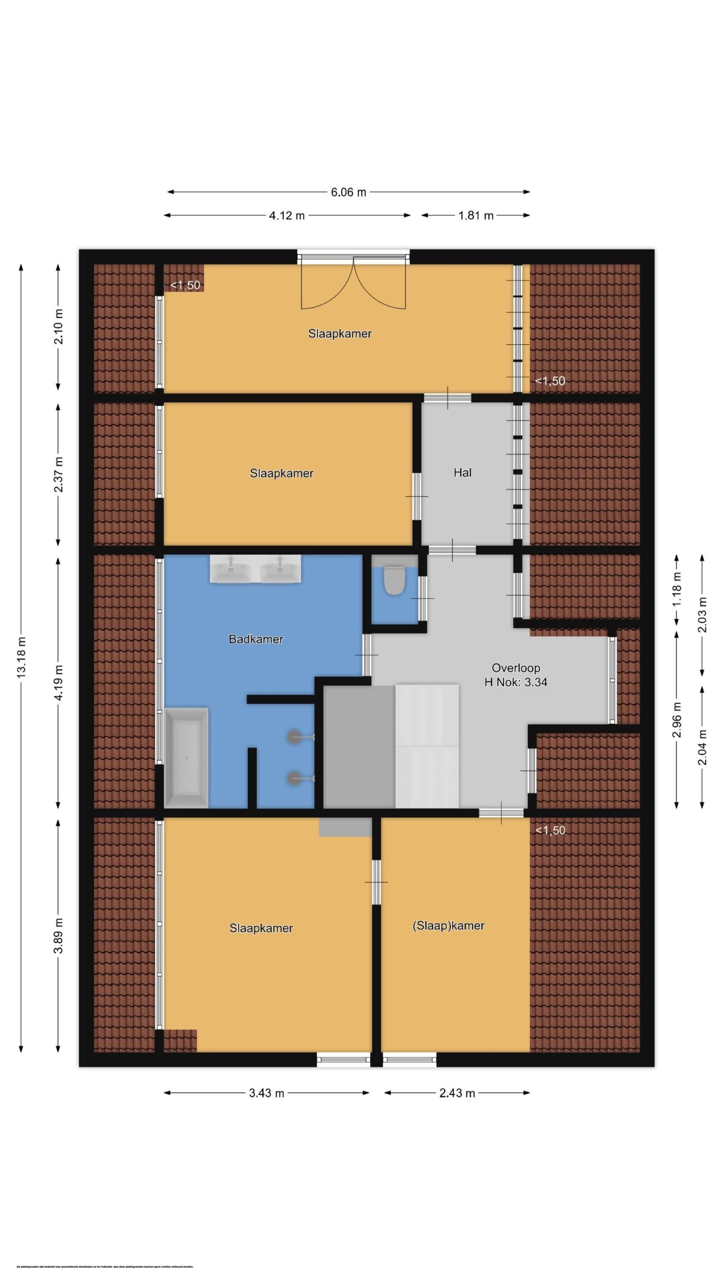 Eerste verdieping: Royale overloop met dakkapel, separaat toilet en vaste kasten. Drie ruime slaapkamers, waarvan één met Frans balkon. De badkamer (2022) beschikt over een dakkapel, dubbele douche, ligbad en dubbele wastafel.