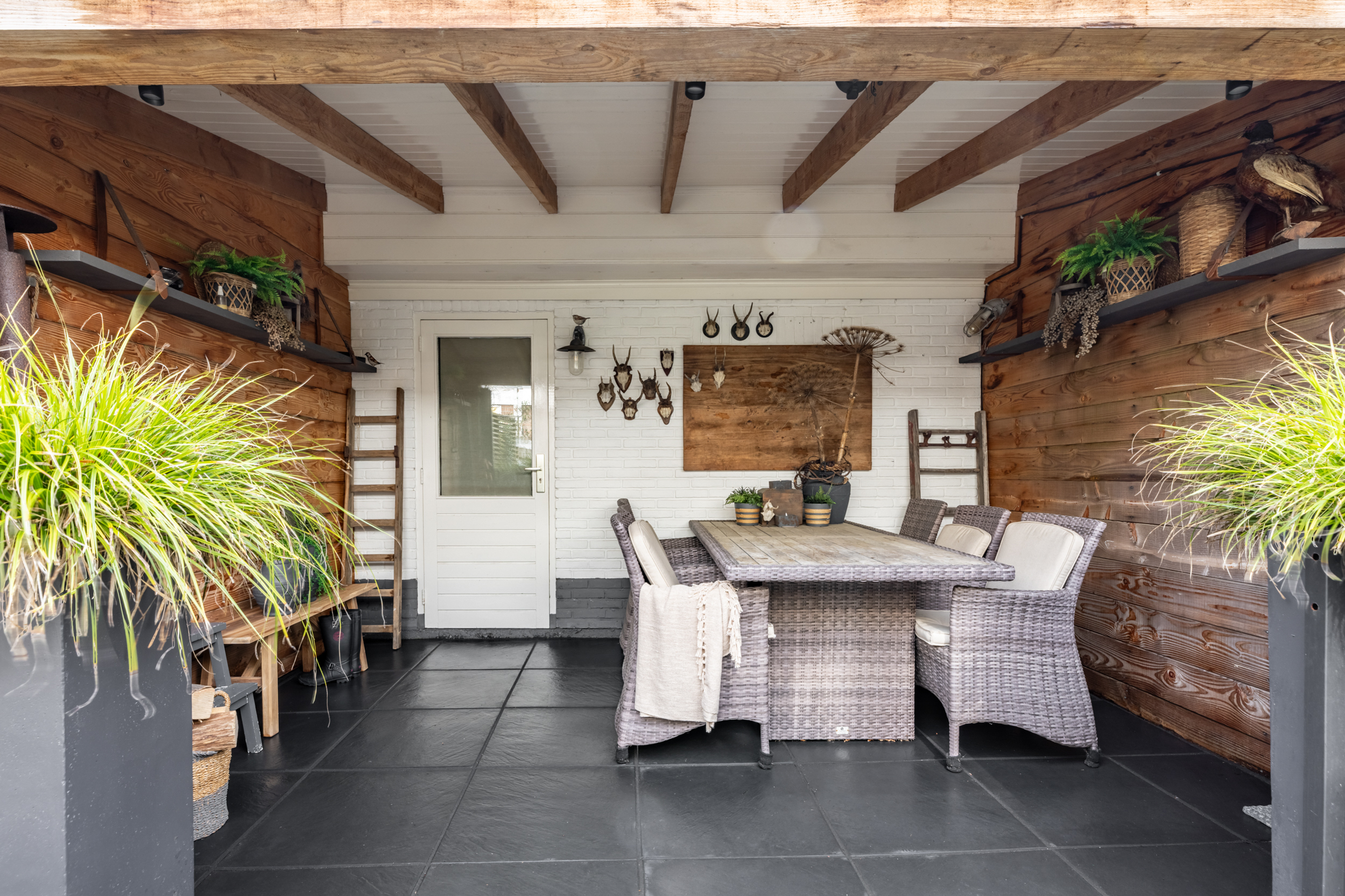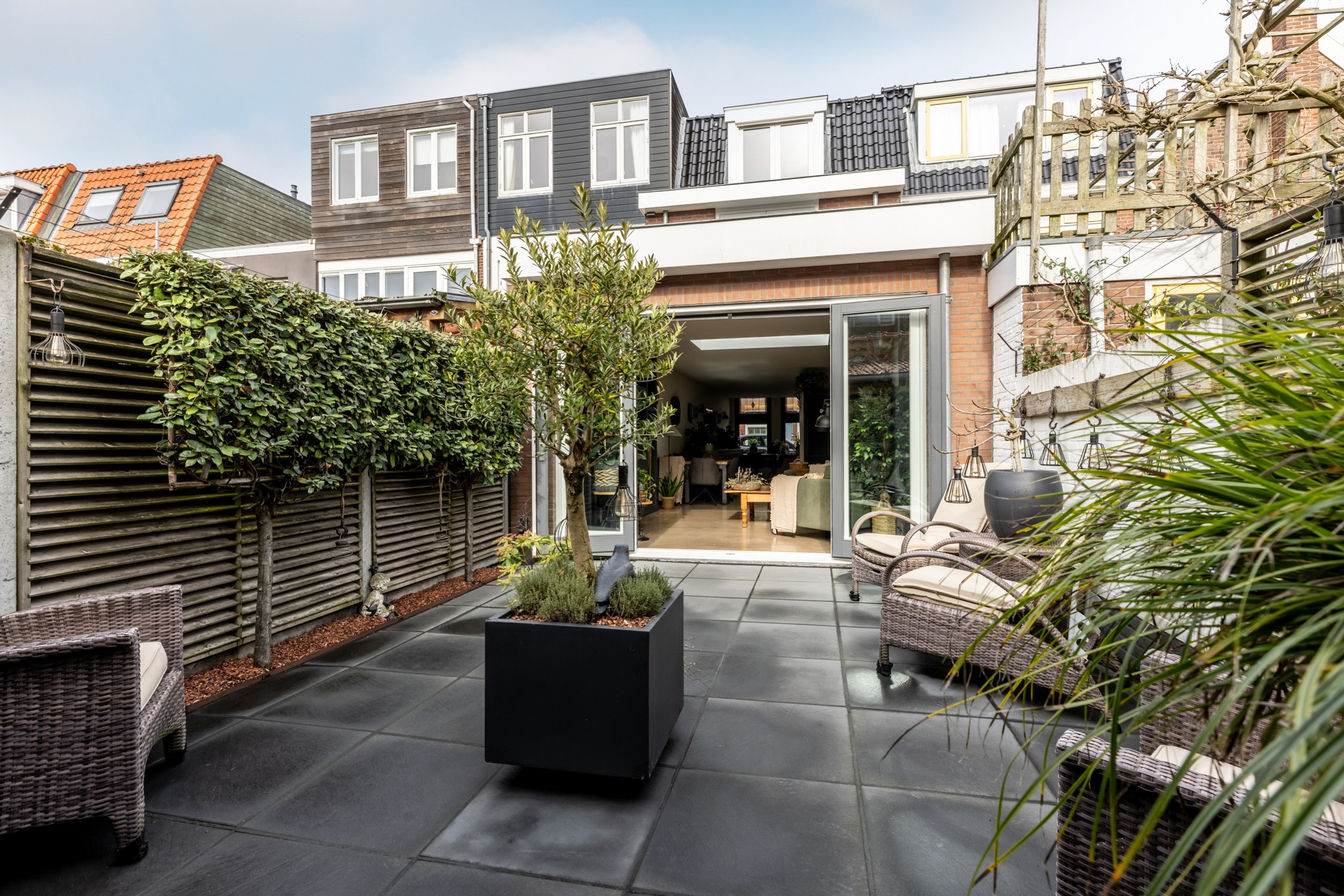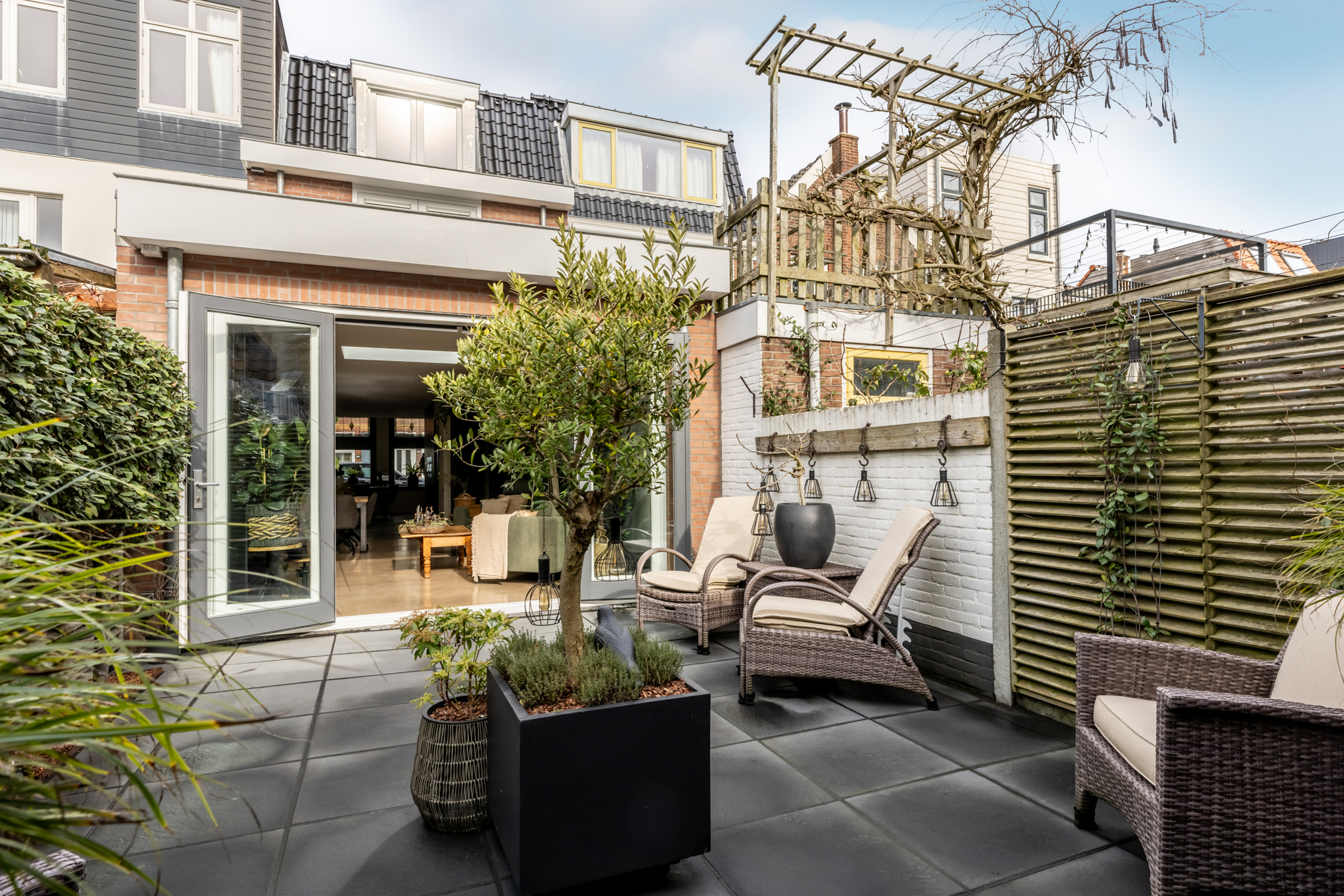 De achtertuin op het zuiden staat garant voor zonuren van ’s ochtends tot in de avond. Hier kun je heerlijk ontspannen, borrelen of uitgebreid tafelen met familie en vrienden. De veranda biedt beschutting op warmere dagen of juist tijdens een zomerse regenbui. Extra praktisch is de ruime schuur én de – in deze buurt best unieke – achterom via de Westerstraat.