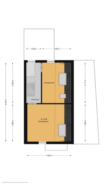 Overloop met toegang tot twee comfortabele slaapkamers, beide voorzien van dakramen en airconditioning.