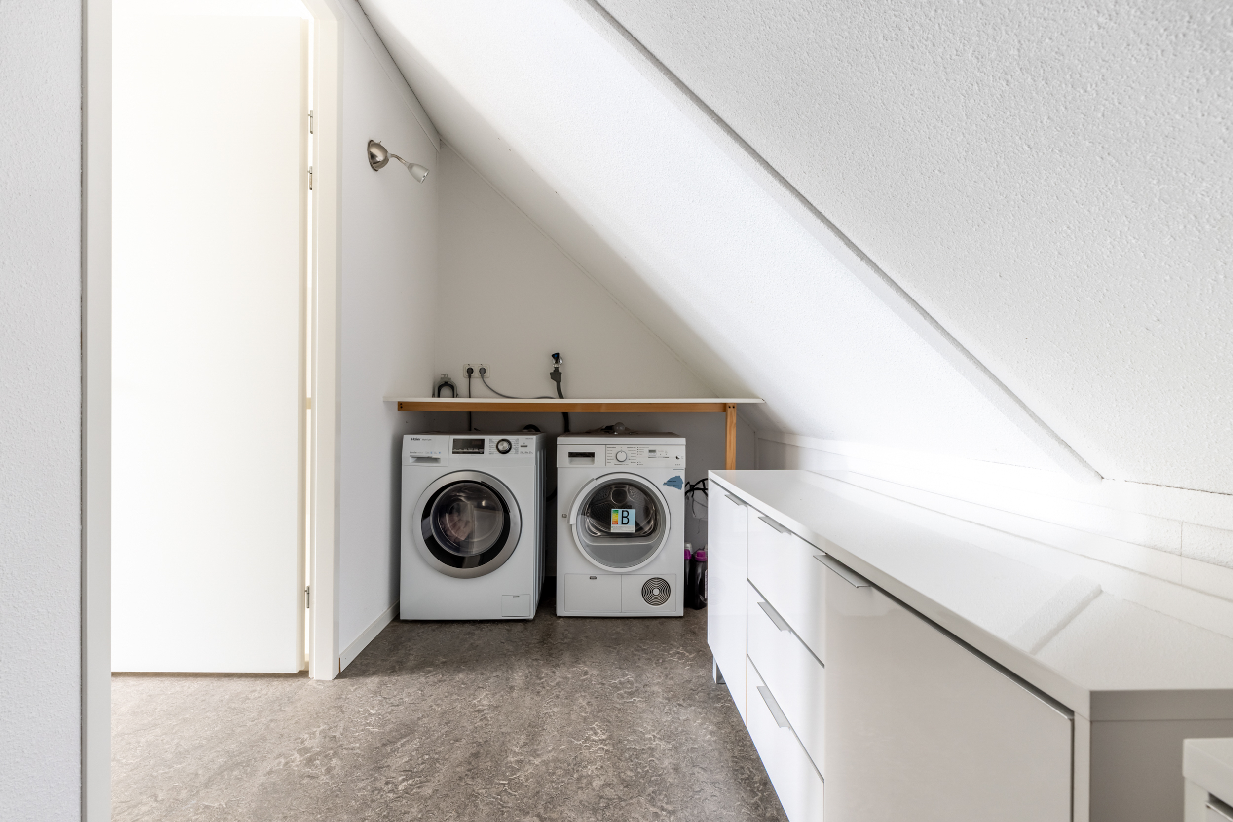 Grote derde slaapkamer en praktische wasruimte met CV-ketel en WTW-installatie.