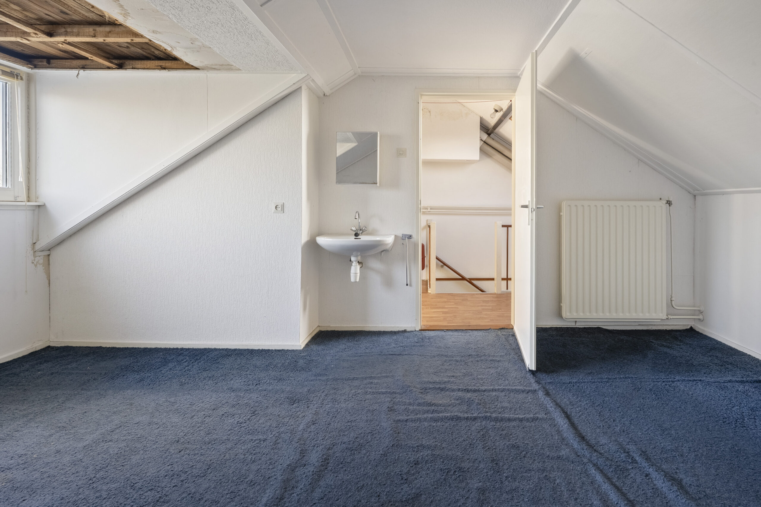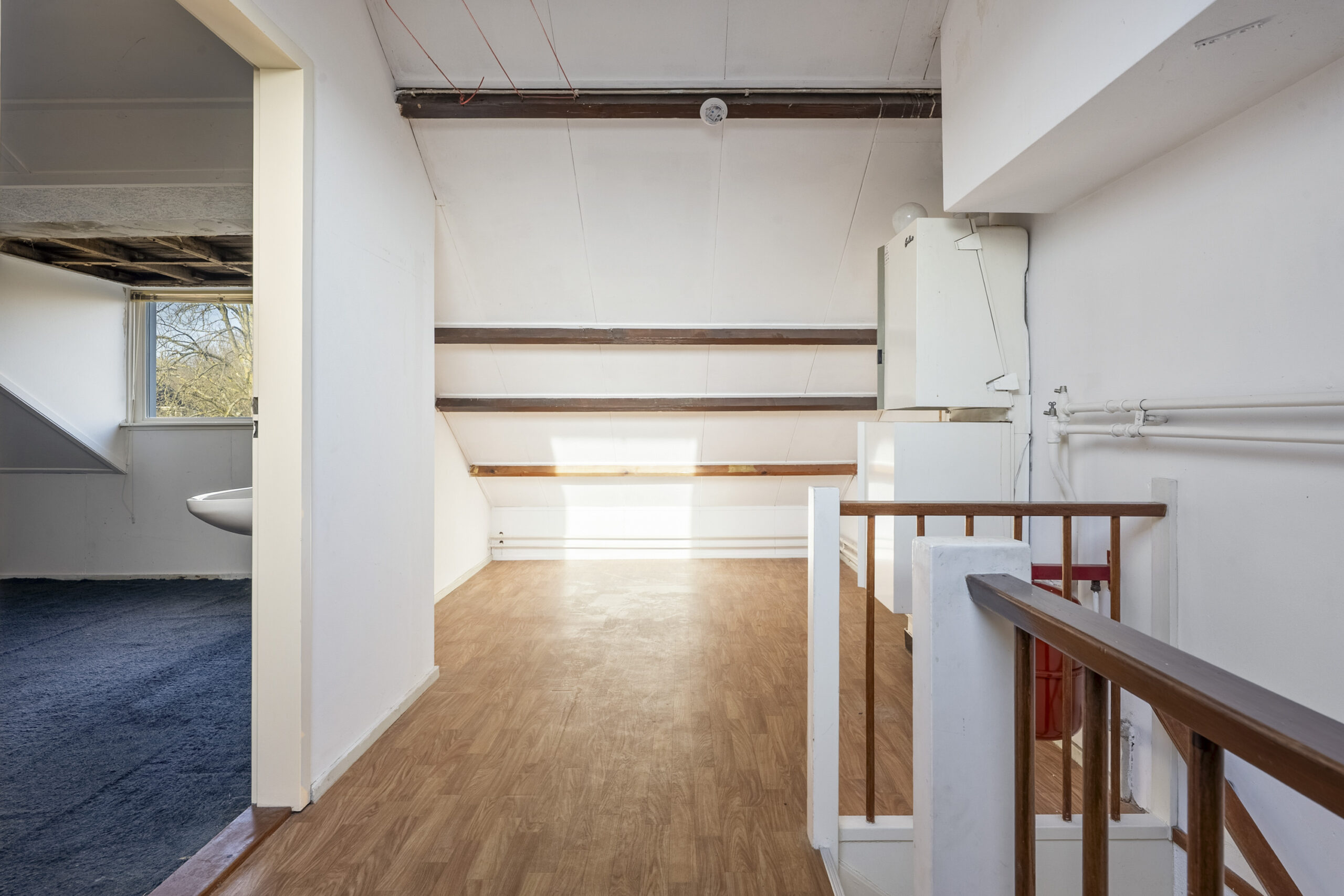 2e Verdieping: overloop met dakraam en cv-ketel, zolderkamer met dakkapel, wastafel en bergruimte