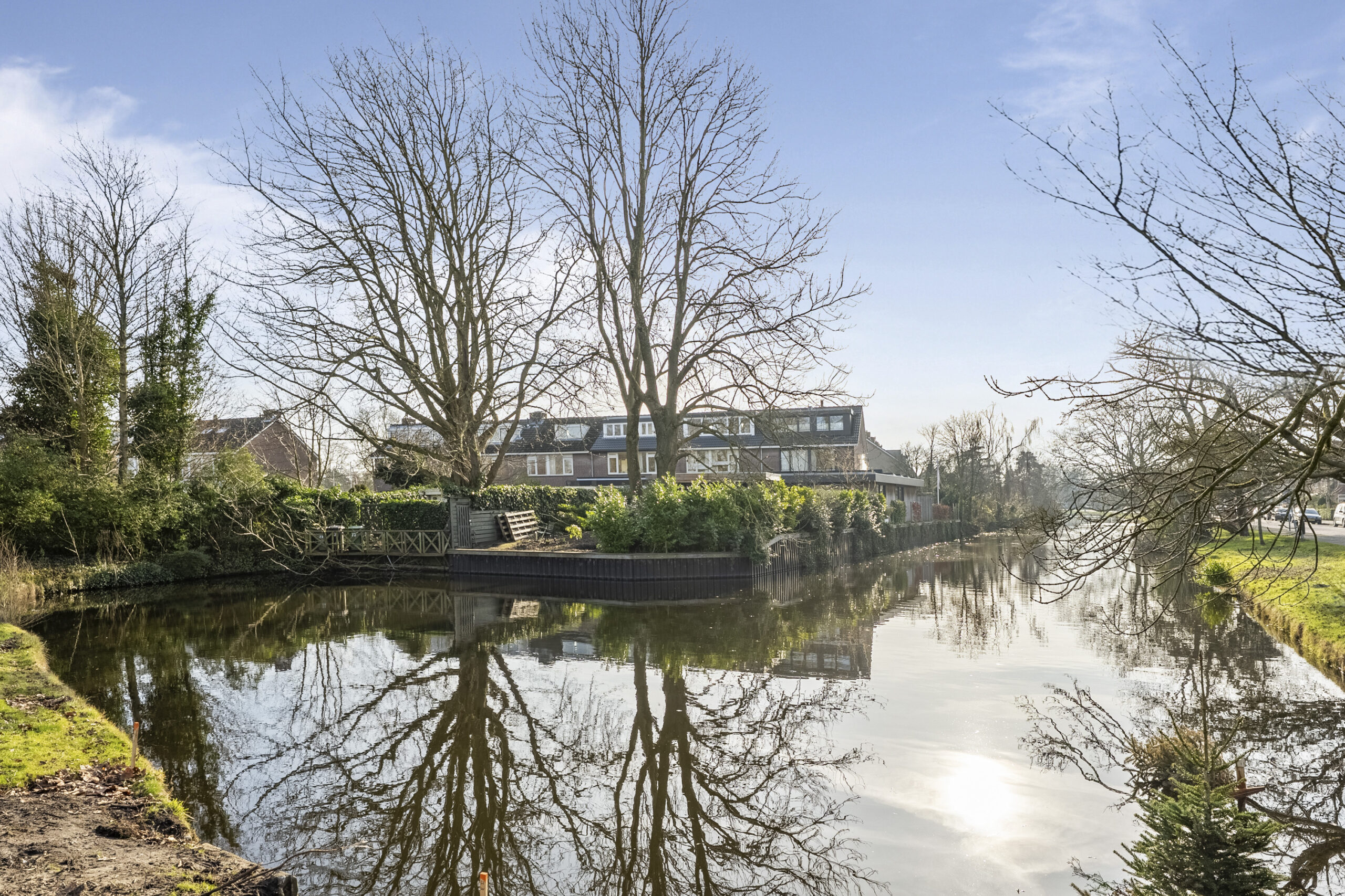 Aan de voorzijde vind je een diepe zonnige tuin op het zuiden. De ca. 30 meter diepe achtertuin heeft een vrije en ruimtelijke ligging en is voorzien van een aangebouwde berging en een achterom. Aan het perceel ligt nagenoeg de Wagnerkade, hier kan je zomers heerlijk zwemmen en suppen en ‘s winters de schaatsen onderbinden.