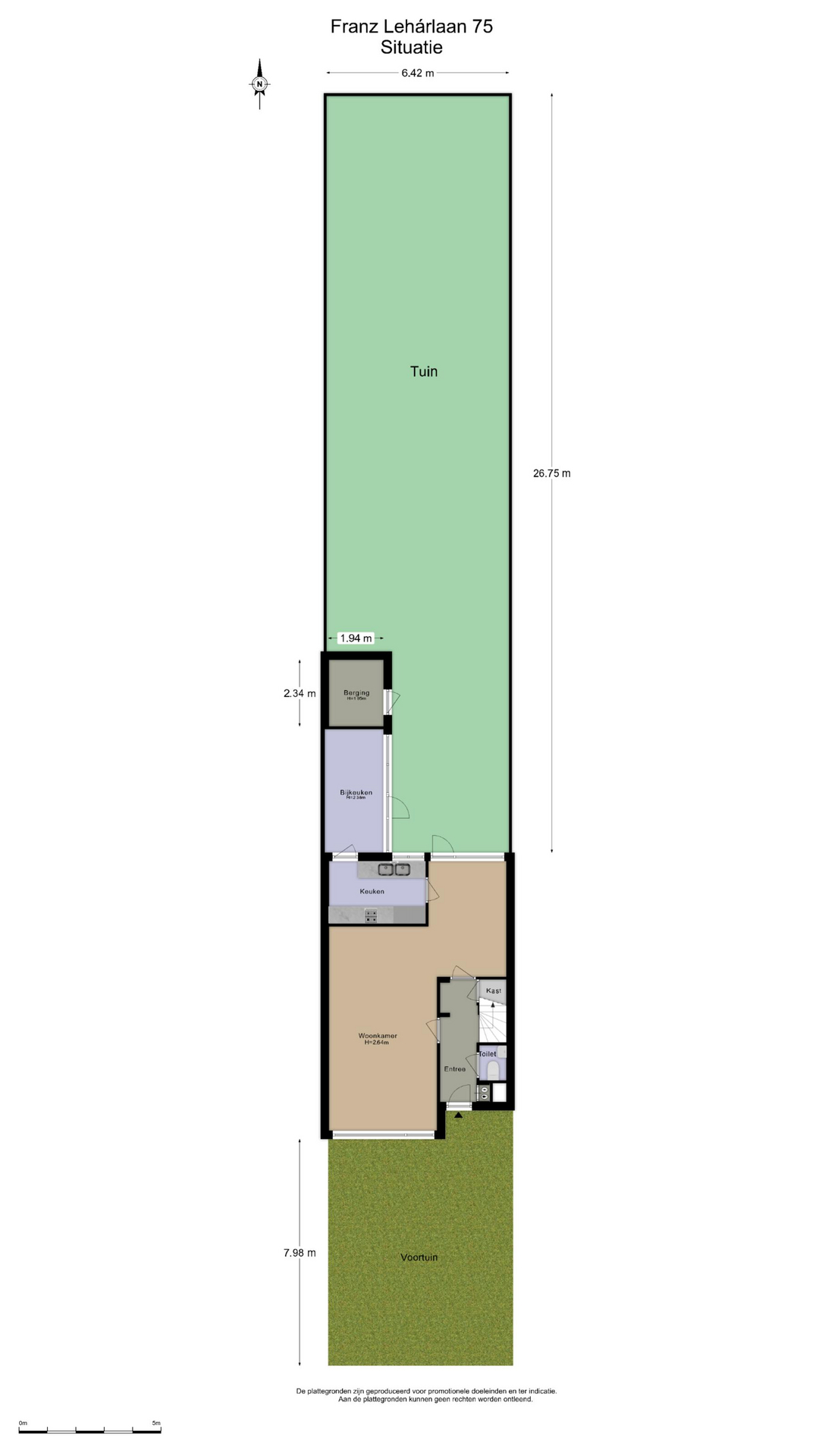 * Zeer diepe tuin ca. 30 meter