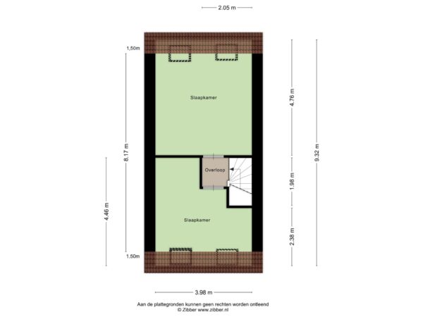 2e verdieping: overloop, slaapkamer aan de voorzijde met 2 Velux dakramen, ruime slaapkamer aan de achterzijde met 2 Velux dakramen.