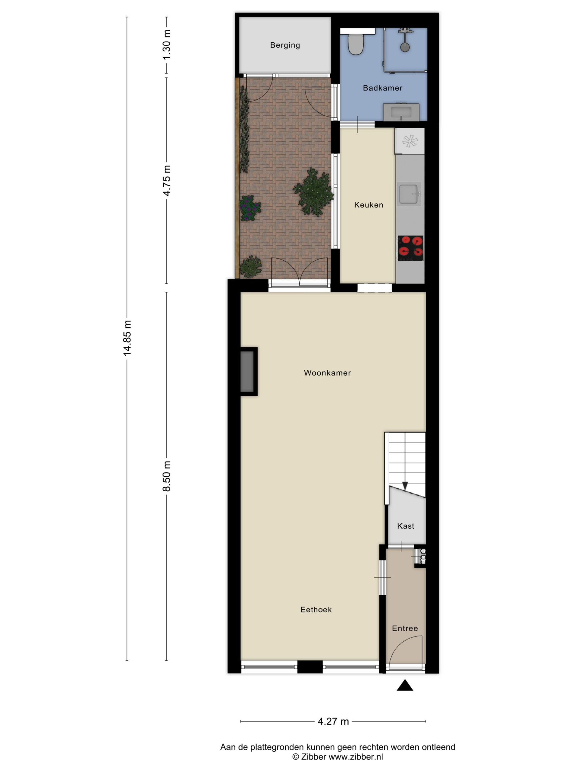 Bergvliering: ruime bergvliering over de hele breedte van de woning.