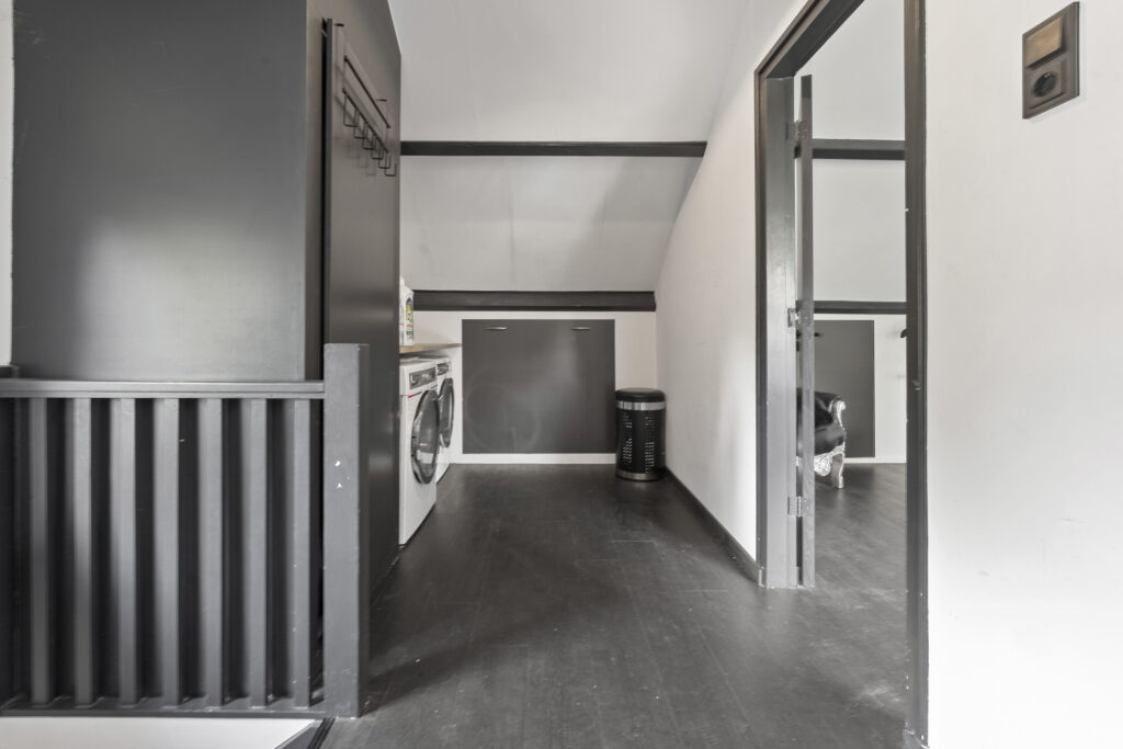 2e Verdieping: ruime overloop met wasmachine/droger aansluiting, kast met cv-ketel en goede bergruimte, slaapkamer met dakkapel en bergruimte