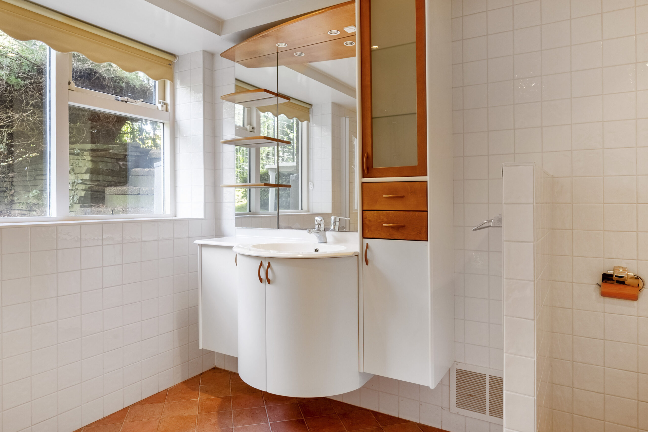 Parterre: entree, ruime hal met leisteen vloer, garderobe en modern zwevend toilet met fontein, royale woonkamer met veel raampartijen, gas haard, leisteen vloer, deur naar terras en schuifpui naar tuin, zeer lichte serre voorzien van marmeren vloer met vloerverwarming, lichtstraat en schuifpui naar tuin, moderne nette keuken met diverse inbouwapparatuur, slaapkamer met wastafelmeubel, slaapkamer met deur naar tuin en tevens toegang naar ouderslaapkamer voorzien van open haard, vaste op maat gemaakte kastenwand, deur naar tuin en openslaande deuren naar moderne luxe badkamer voorzien van marmeren vloer met vloerverwarming, whirlpool ligbad, inloopdouche met massagestralen, zwevend toilet, meubel met dubbele wastafel en op maat gemaakte kastenwanden, via hal trap naar….