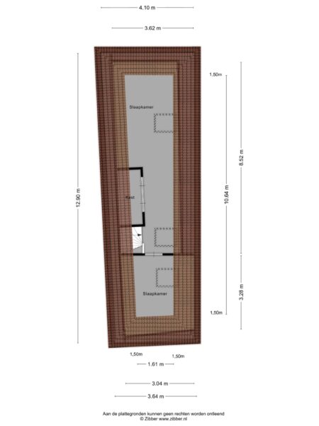 Slaapkamer onder de kap aan de voorzijde + optie voor 2e slaapkamer achterzijde. CV-ruimte.