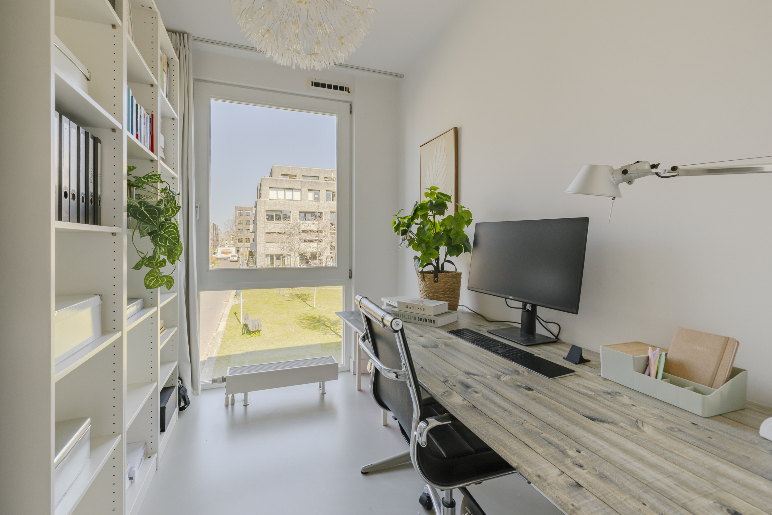 Tweede Verdieping: volledig voorzien van gietvloer, overloop, extra berging met wasmachine, droger en CV aansluiting, slaapkamer voorzijde met grote ramen en zicht over plantsoen, deur naar grote berging/inloopkast, ruime slaapkamer achterzijde met inloopkast en badkamer en-suite voorzien van inloopdouche, wastafelmeubel en toilet.