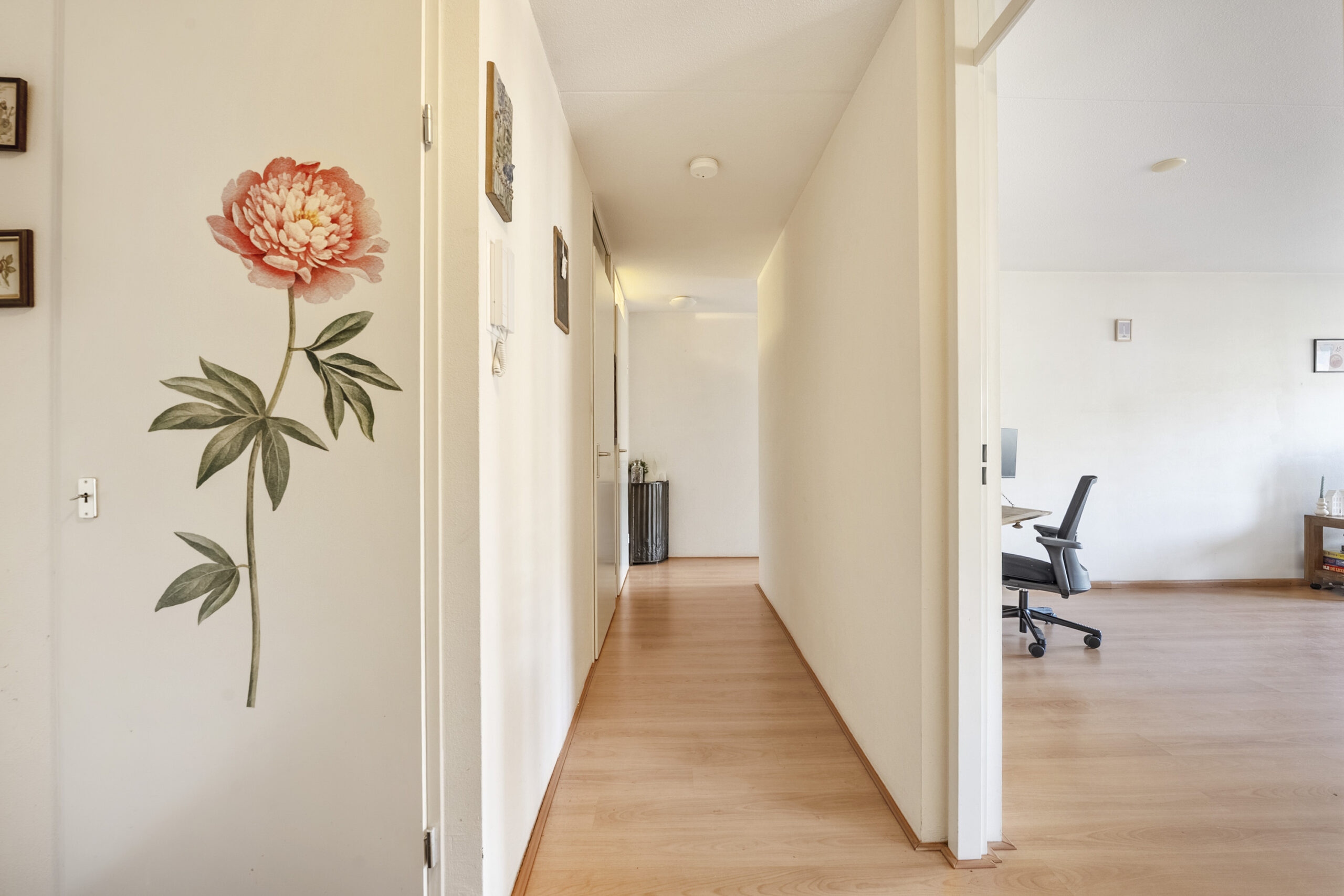 Het drie kamer appartement bestaat o.a. uit een zeer royale, extra brede woonkamer met een open keuken, 2 slaapkamers waarvan 1 met walk-in, een badkamer en een was-/bergruimte. De 2 zonnige balkons op het westen zijn zowel vanuit de woonkamer als vanuit de slaapkamers bereikbaar. Op de parterre bevindt zich een eigen berging, ideaal voor het opbergen van extra spullen. Het complex is voorzien van een lift en een afgesloten entree (videofooninstallatie mogelijk) waardoor er een fijn en veilig woongenot gecreëerd wordt. Aan de voorzijde bevindt zich een oprit met elektrisch hekwerk met toegang naar een eigen carport, een privé parkeerplaats en de gemeenschappelijke fietsenberging.