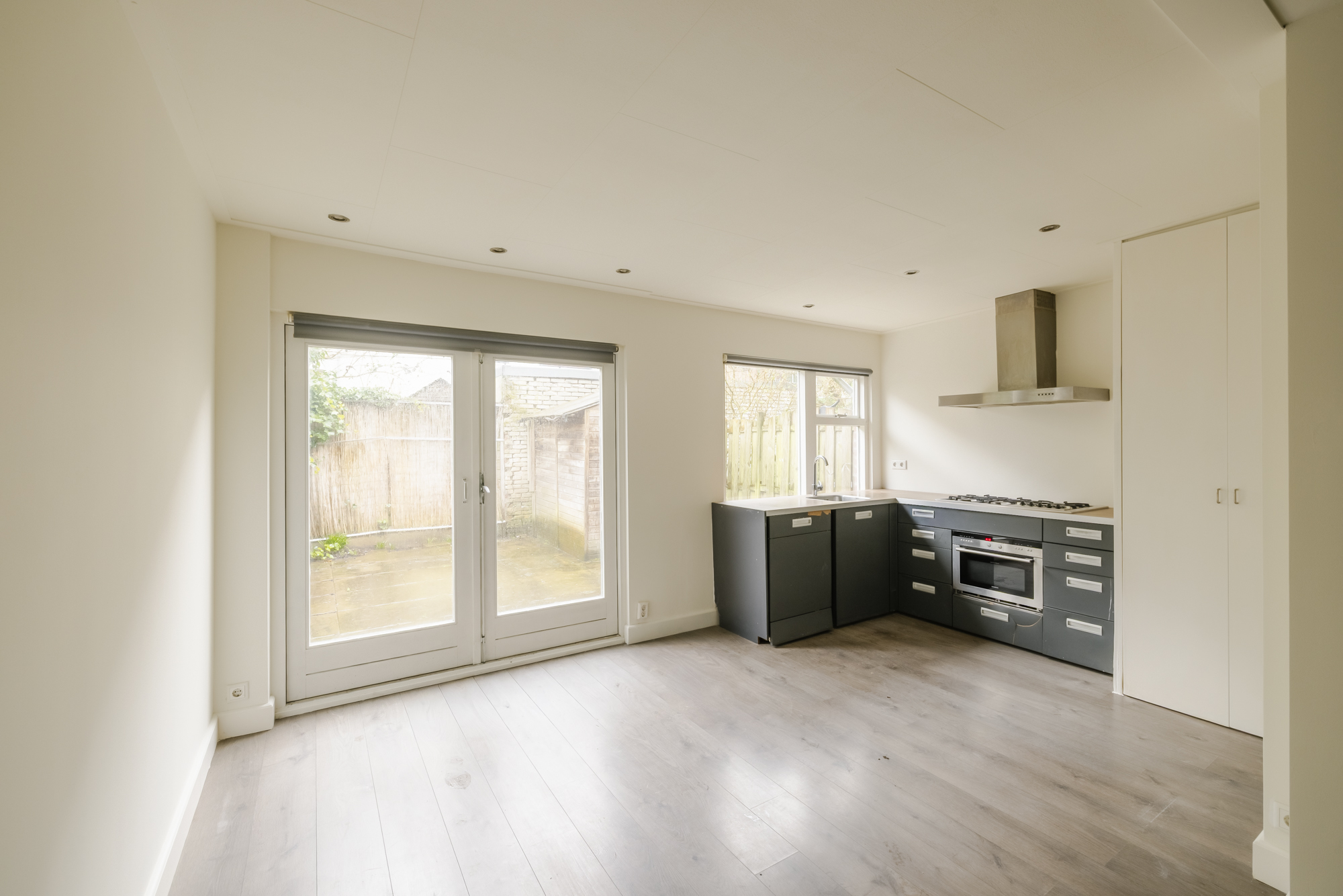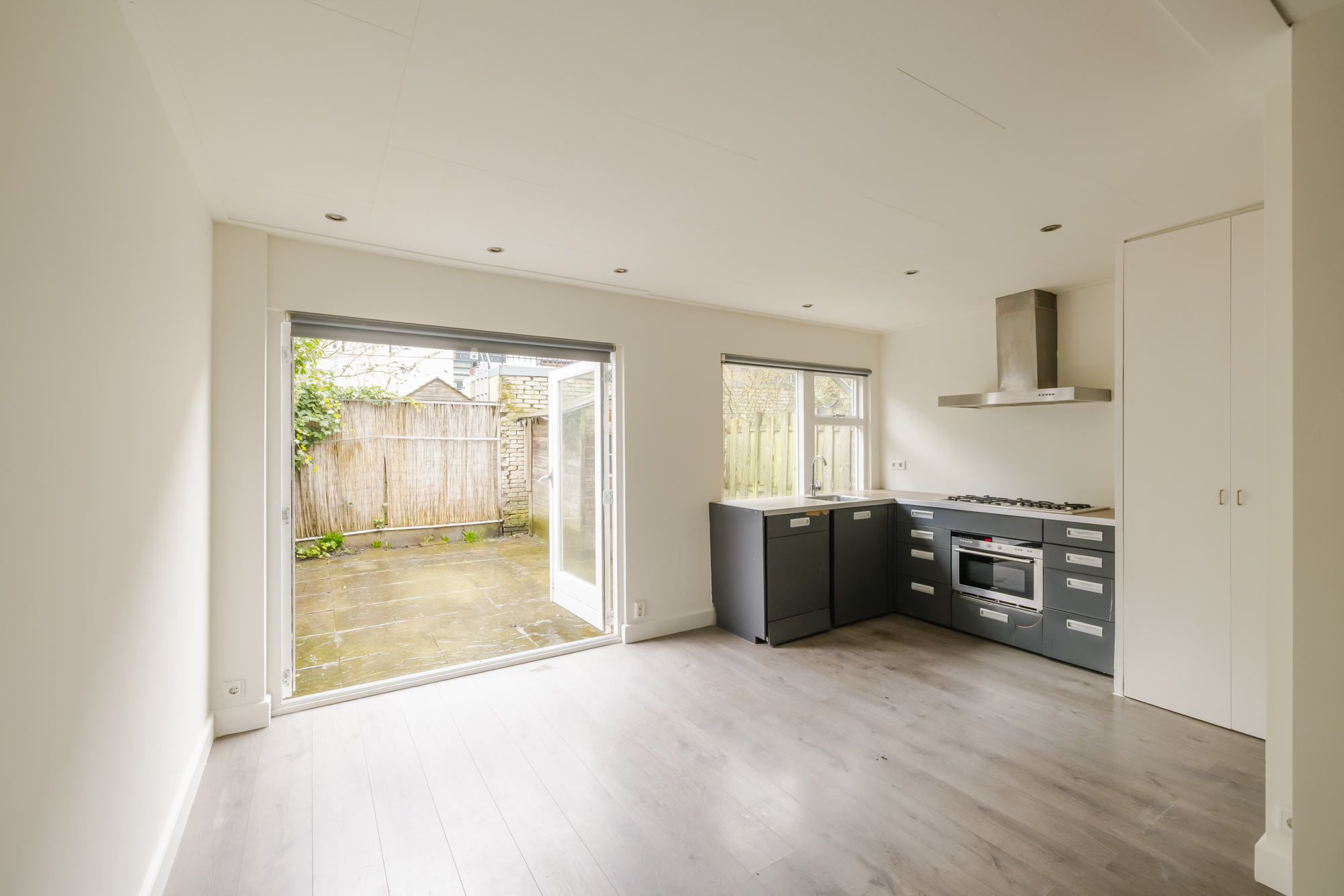 PUUR living* in this ground-floor apartment with a west-facing city garden, located in a historic building from 1904 in Haarlem’s Leidsebuurt neighborhood. This apartment features four rooms and is situated on the ground floor. The layout consists of an L-shaped living room with an open kitchen and French doors leading to the garden, creating a pleasant connection between indoors and outdoors. The finish is simple and provides a good foundation for modernizing the home to your own taste.