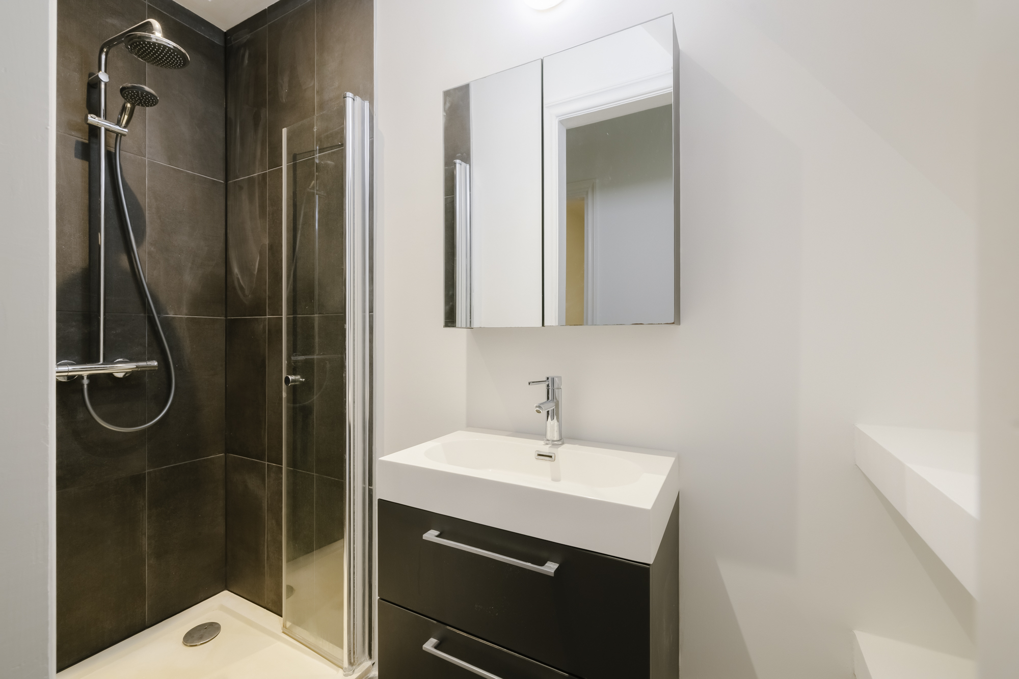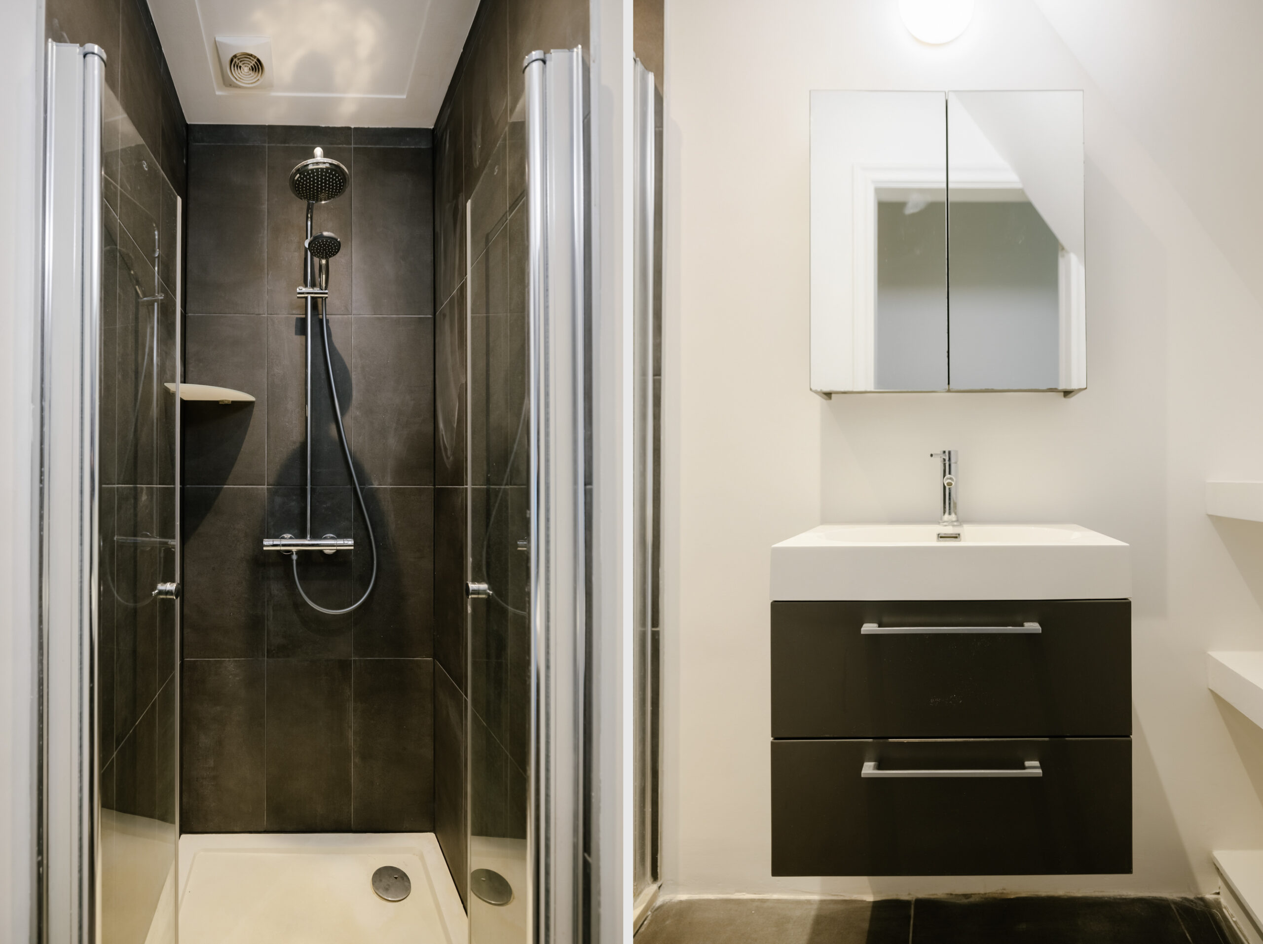 Verder beschikt de woning over drie (slaap-) kamers, waarvan twee kamers zonder daglicht. De badkamer is voorzien van een douche en een wastafelmeubel. In de woning is tevens ruimte voor de opstelling van de CV-ketel.