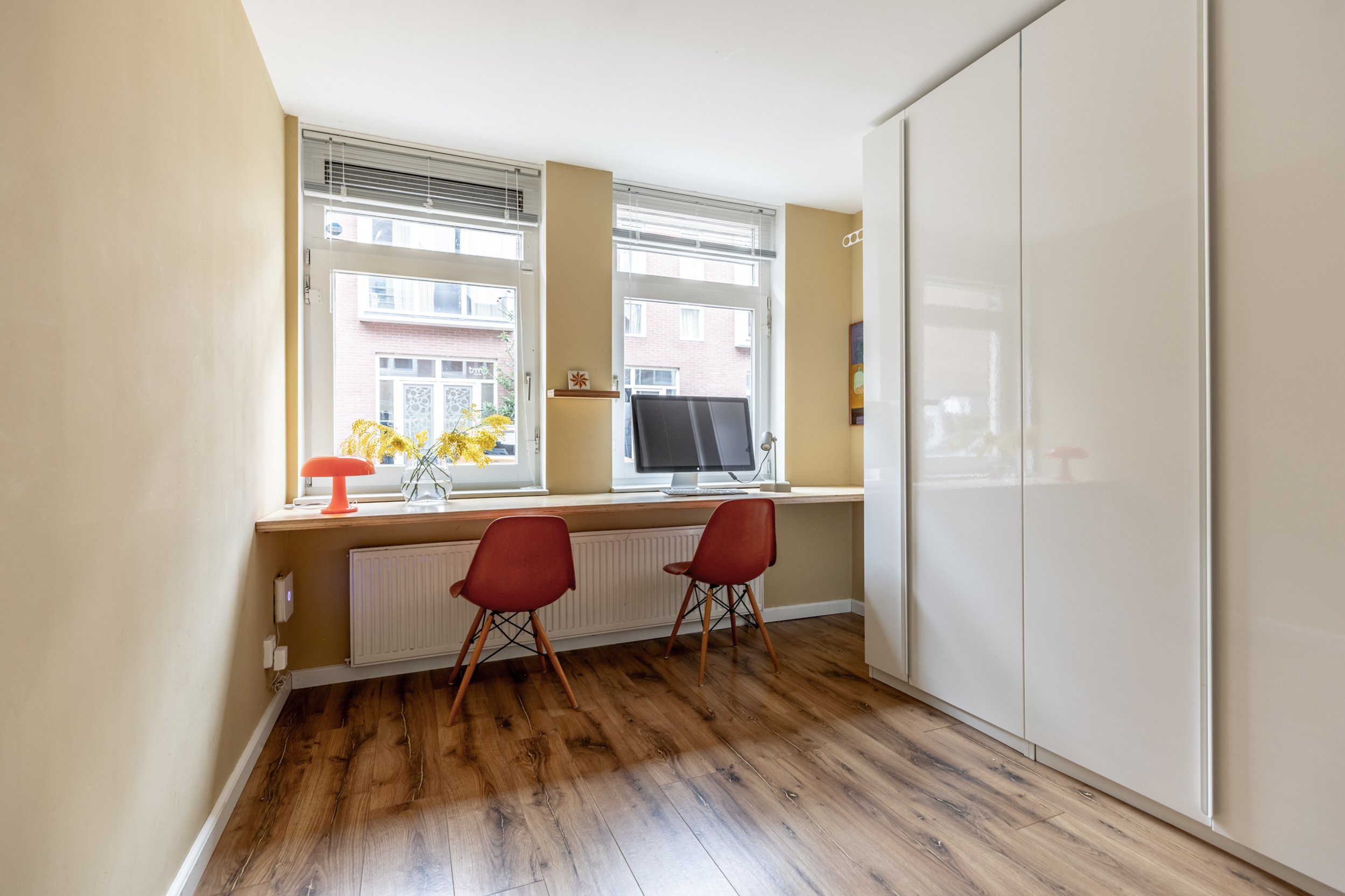 De Korte Schimmelstraat is een bijzonder rustige straat, terwijl je tegelijkertijd midden in het bruisende Amsterdam-West woont. De Ten Katemarkt ligt op minder dan 80 meter afstand en ook De Hallen, het Bilderdijkpark en talloze cafés, restaurants en winkels bevinden zich op loopafstand. De buurt staat bekend om haar prettige sfeer en fijne bewoners; de huidige eigenaren hebben hier altijd met veel plezier en zonder overlast gewoond.