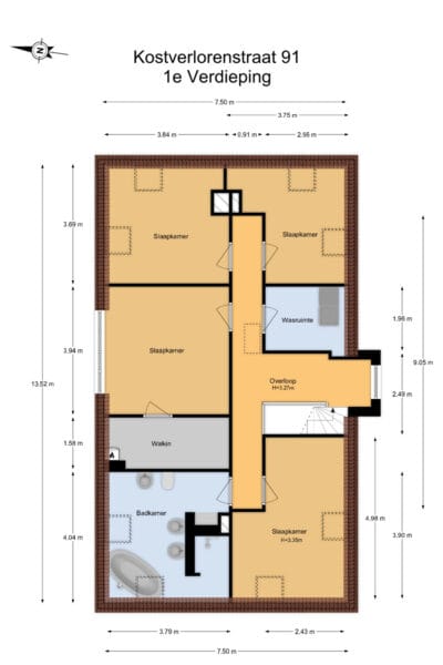 1e Verdieping: overloop met dakkapel, twee slaapkamers aan voorzijde ieder voorzien van 2 Velux dakramen, slaapkamer aan achterzijde met groot dakkapel en walk-in, slaapkamer aan achterzijde met 2 Velux dakramen, moderne luxe badkamer (Alessi) voorzien van ligbad, dubbele wastafel, bidet, toilet en inloopdouche met handdouche en rainshower en 2 Velux dakramen, waskamer met wasmachine/droger aansluiting, via overloop vlizotrap naar….