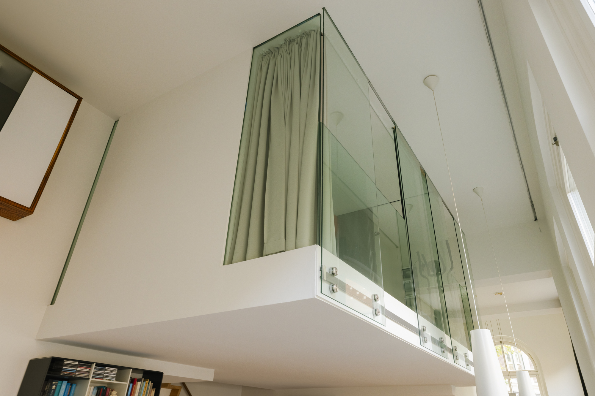 Het appartement is v.v. twee losse entresols (tussenverdieping). Op de 1e vind je de hoofdslaapkamer met ruime inloopkast / werkplek en de badkamer. De badkamer heeft een ruime inloopdouche, wastafelmeubel en toilet. Het plaatsen van een ligbad is hier eenvoudig, alle aansluitingen zijn al aanwezig. Op de 2e entresol vind je een multifunctionele ruimte – ideaal als werkkamer, logeerplek of atelier – met prachtig uitzicht de Zoetestraat in.