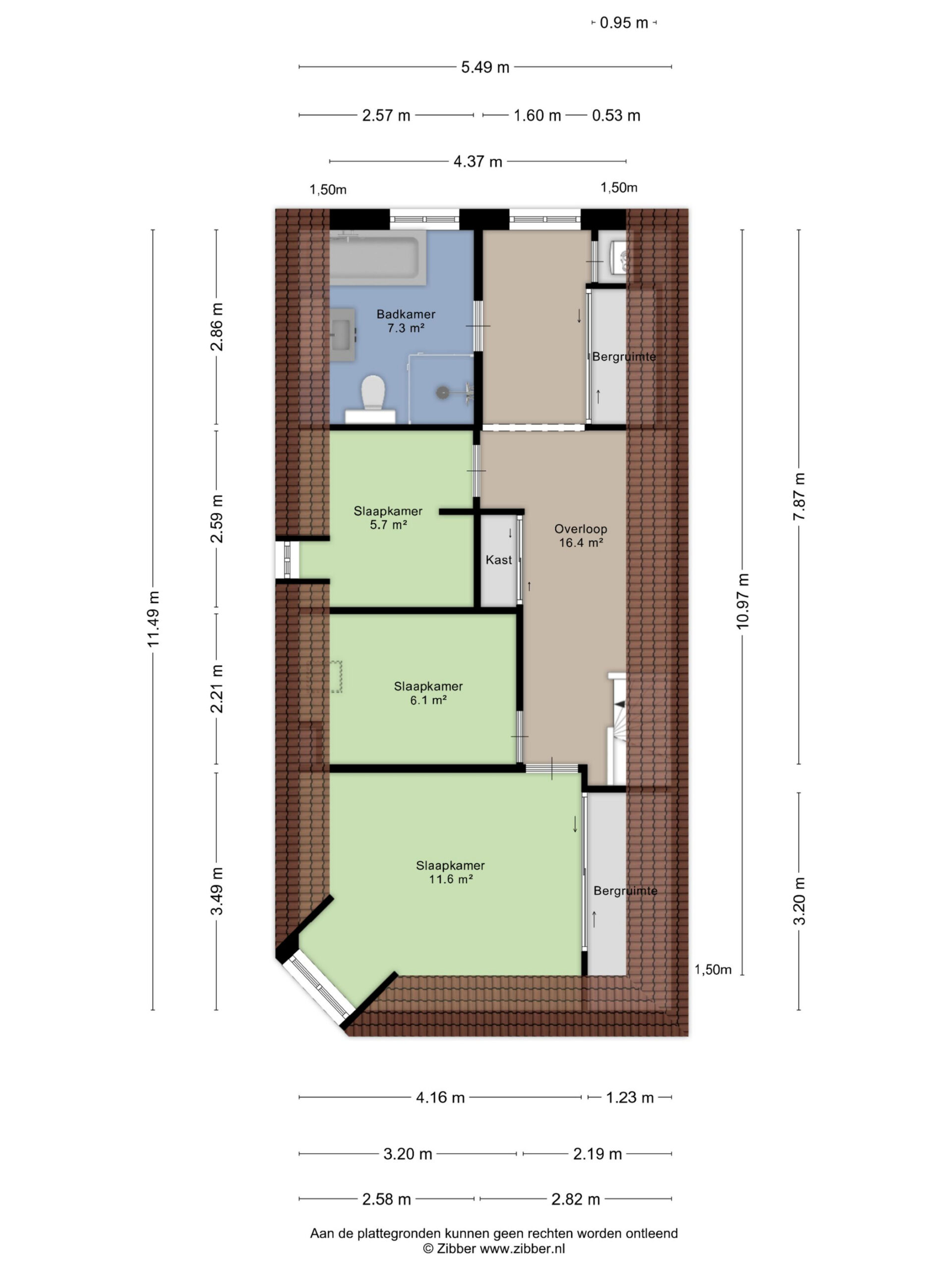 Zie voor de indeling en de maatvoering de plattegronden.