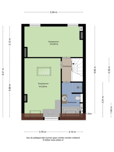 2e Verdieping: overloop met bergruimte boven trapgat. Ruime slaapkamer aan de voorzijde met keukenblok, dakkapel en dakraam. Ruime slaapkamer aan de achterzijde. Moderne badkamer met ligbad / inloopdouche / wastafelmeubel en toilet. Deze badkamer is v.v. elektrische vloerverwarming en in een kast is de cv-ketel weggewerkt.