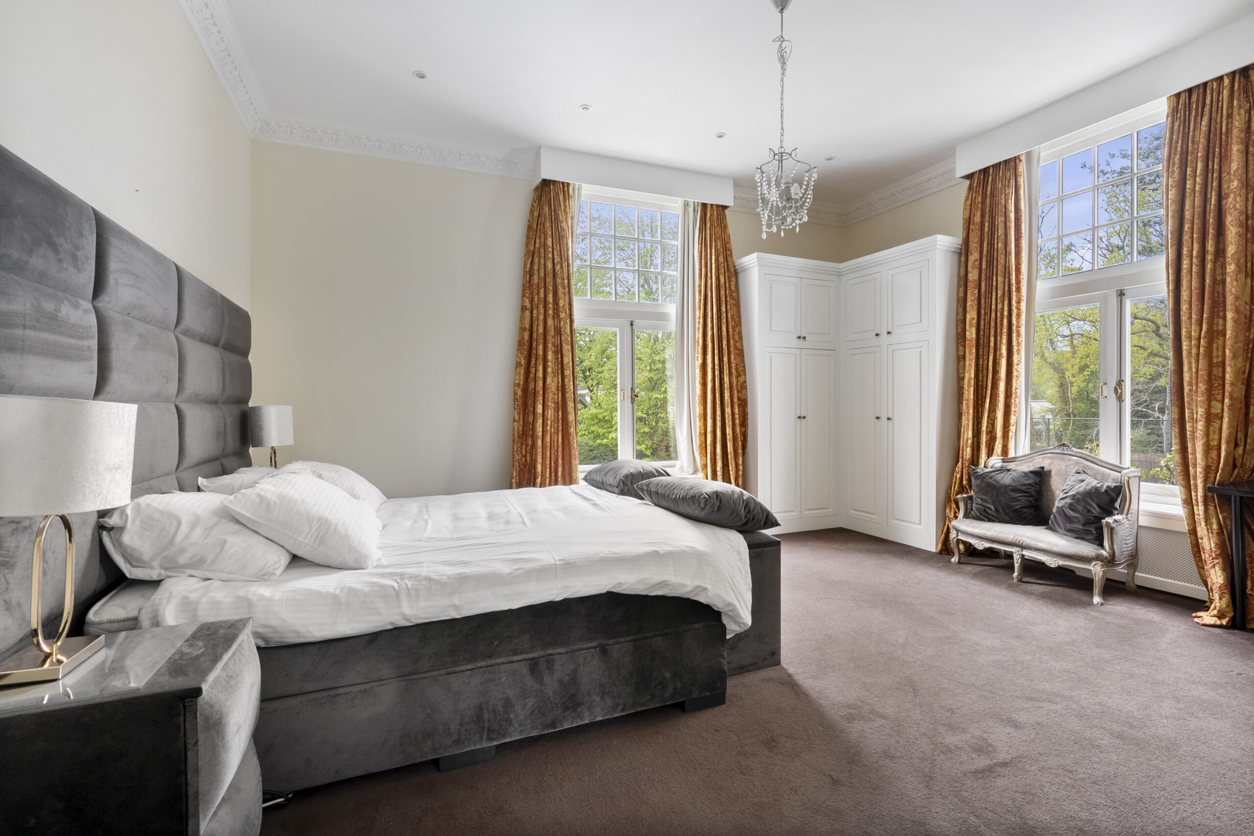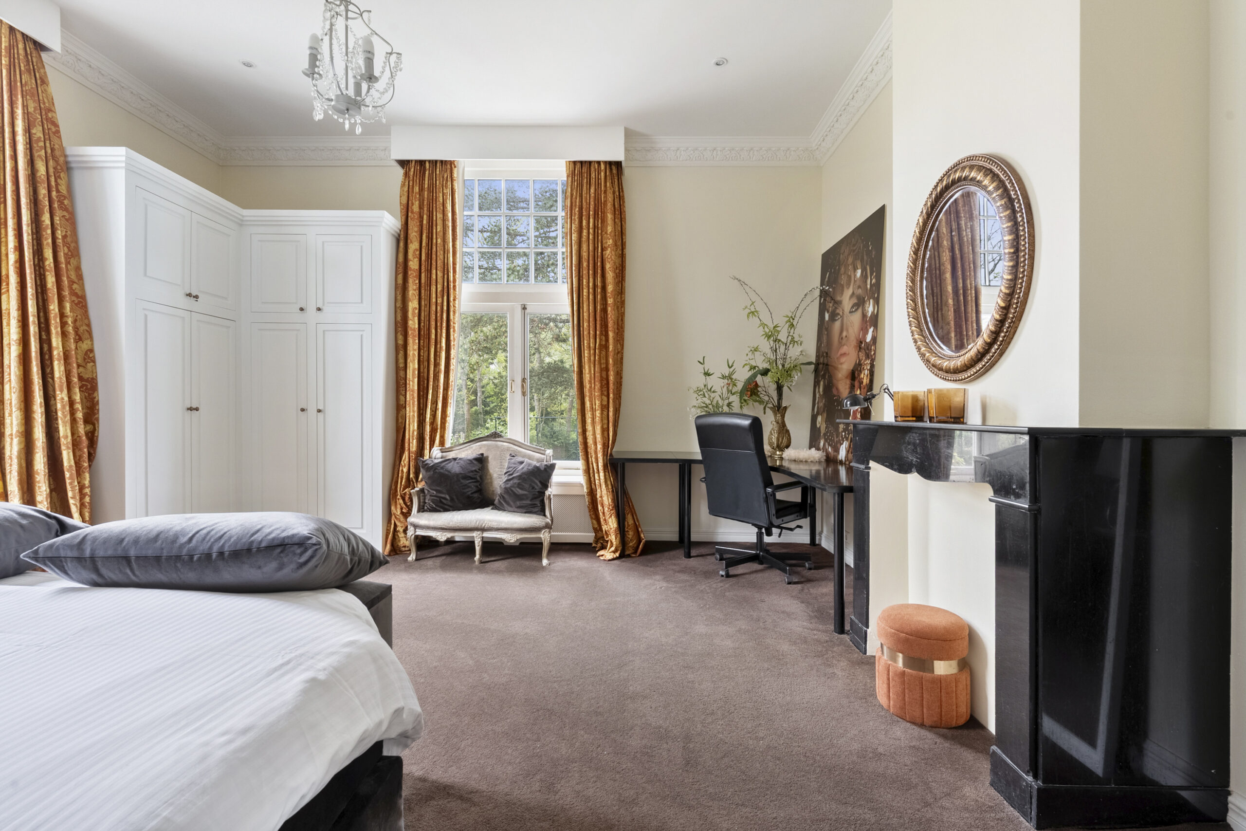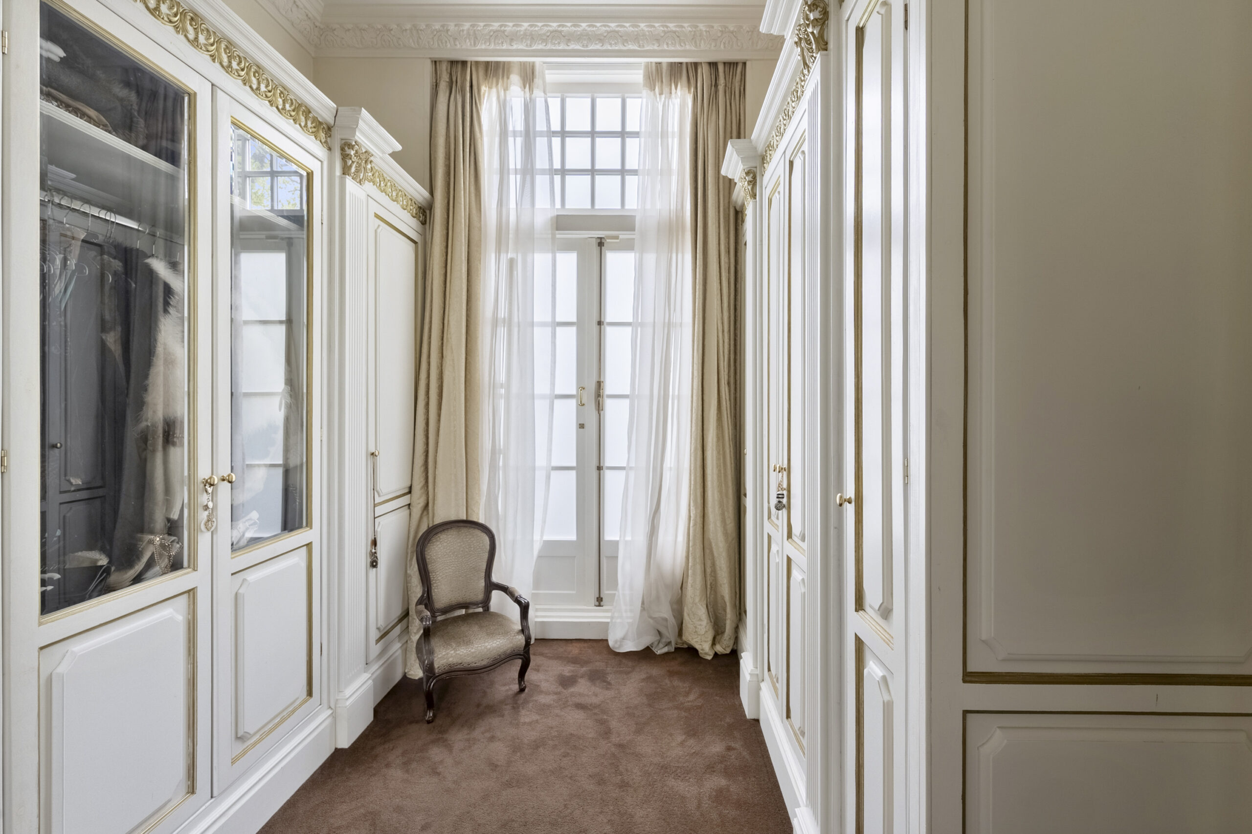 1e Verdieping: ruime overloop, zeer ruime ouderslaapkamer voorzien van marmeren schouw met gashaard, vaste kasten, erker, airco en openslaande deuren naar dakterras, slaapkamer aan achterzijde met extra zijraam en marmeren schouw, slaapkamer met vaste kasten en openslaande deuren naar dakterras aan achterzijde, zijkamer met openslaande deuren naar dakterras, ruime badkamer met Cleopatra whirlpool duoligbad, douche voorzien van handdouche en rainshower, meubel met dubbele wastafel, handdoekradiator en zwevend toilet, bordestrap naar….
