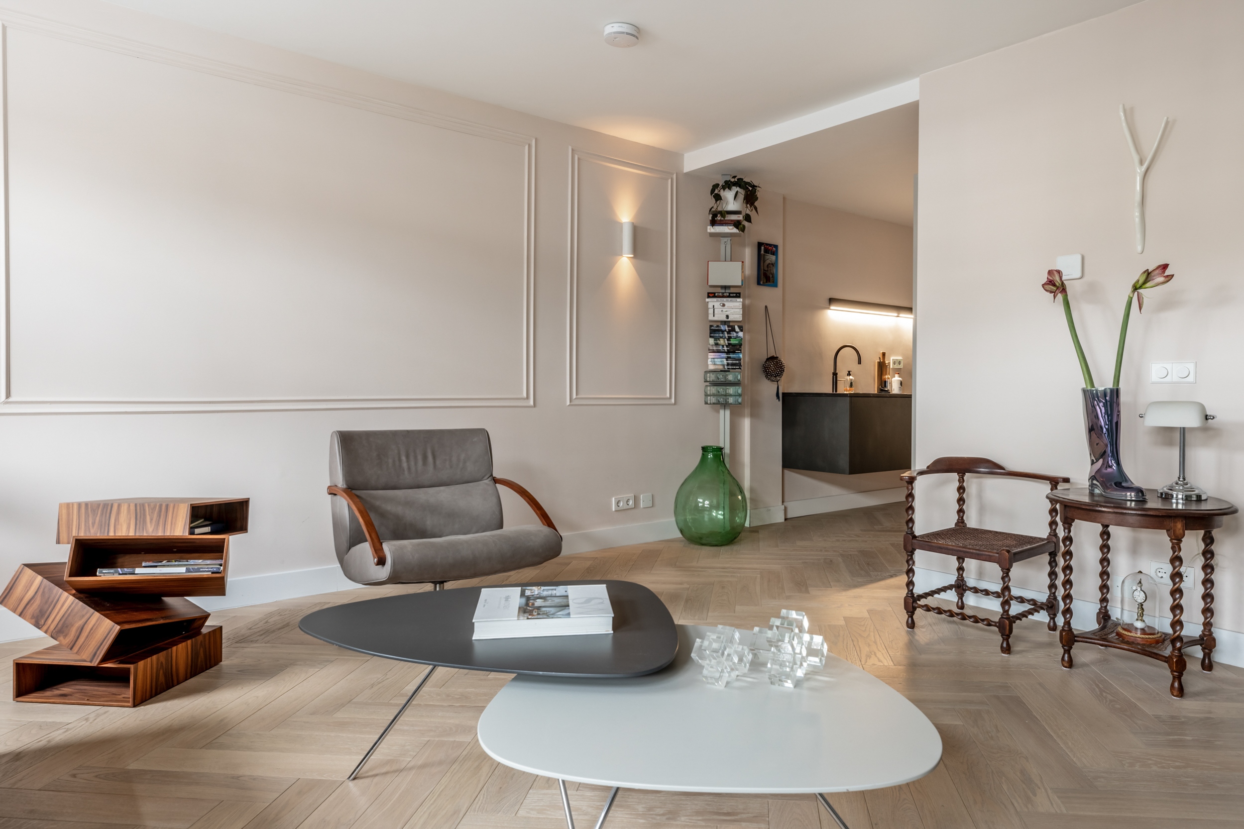 Luxurious ‘boutique hotel’ atmosphere and turnkey 3-room flat (approx. 80 m²) on the ground floor of the stately and excellently maintained apartment complex. This city apartment, completed in 2024 and 2025, offers a spacious living room with a new semi-open kitchen with built-in appliances from Neff, Quooker and a 4-burner induction hob from Bora. The apartment has a modern and luxurious new bathroom (with underfloor heating) and 2 bedrooms. The entire property has beautiful herringbone wooden flooring. At the front of the flat, the courtyard offers space for a lounge set or a (breakfast) seating area. The courtyard enjoys afternoon sun throughout the summer months. The flat also has a storage room in the building.