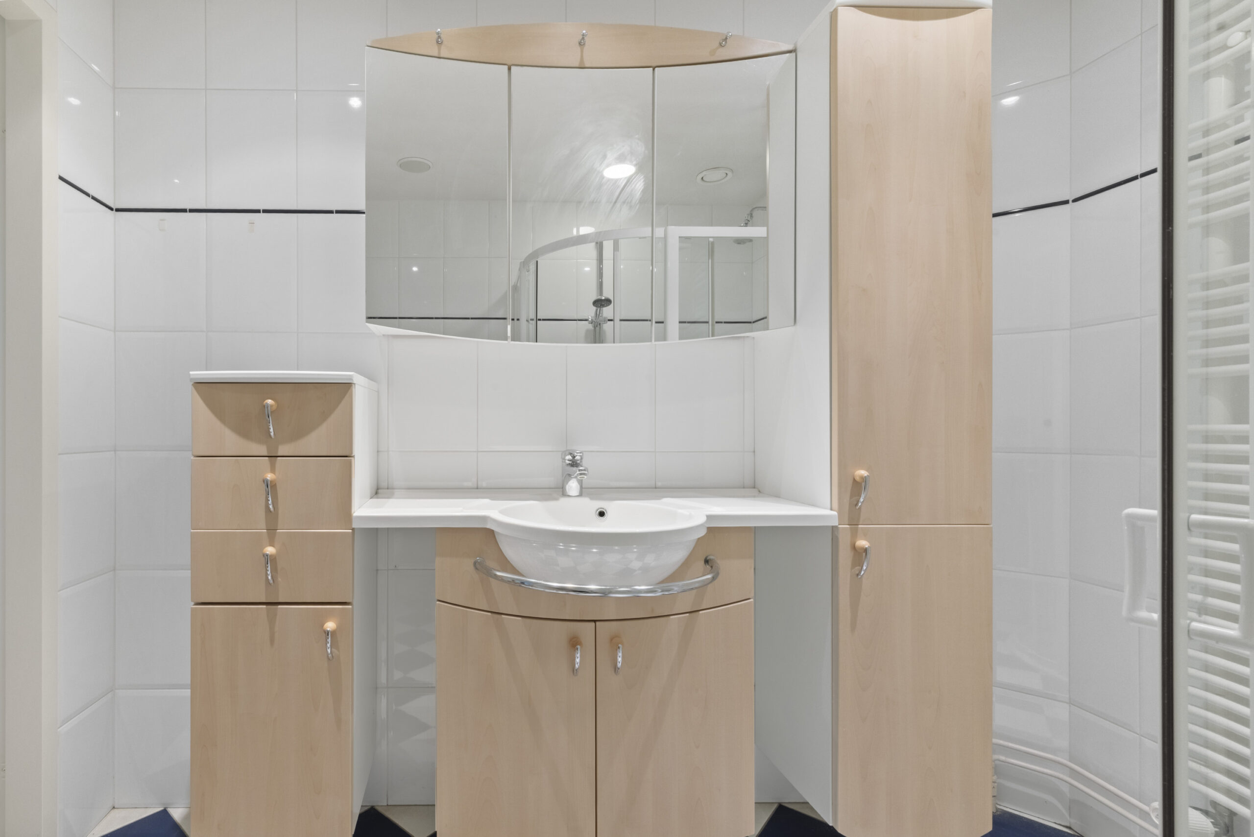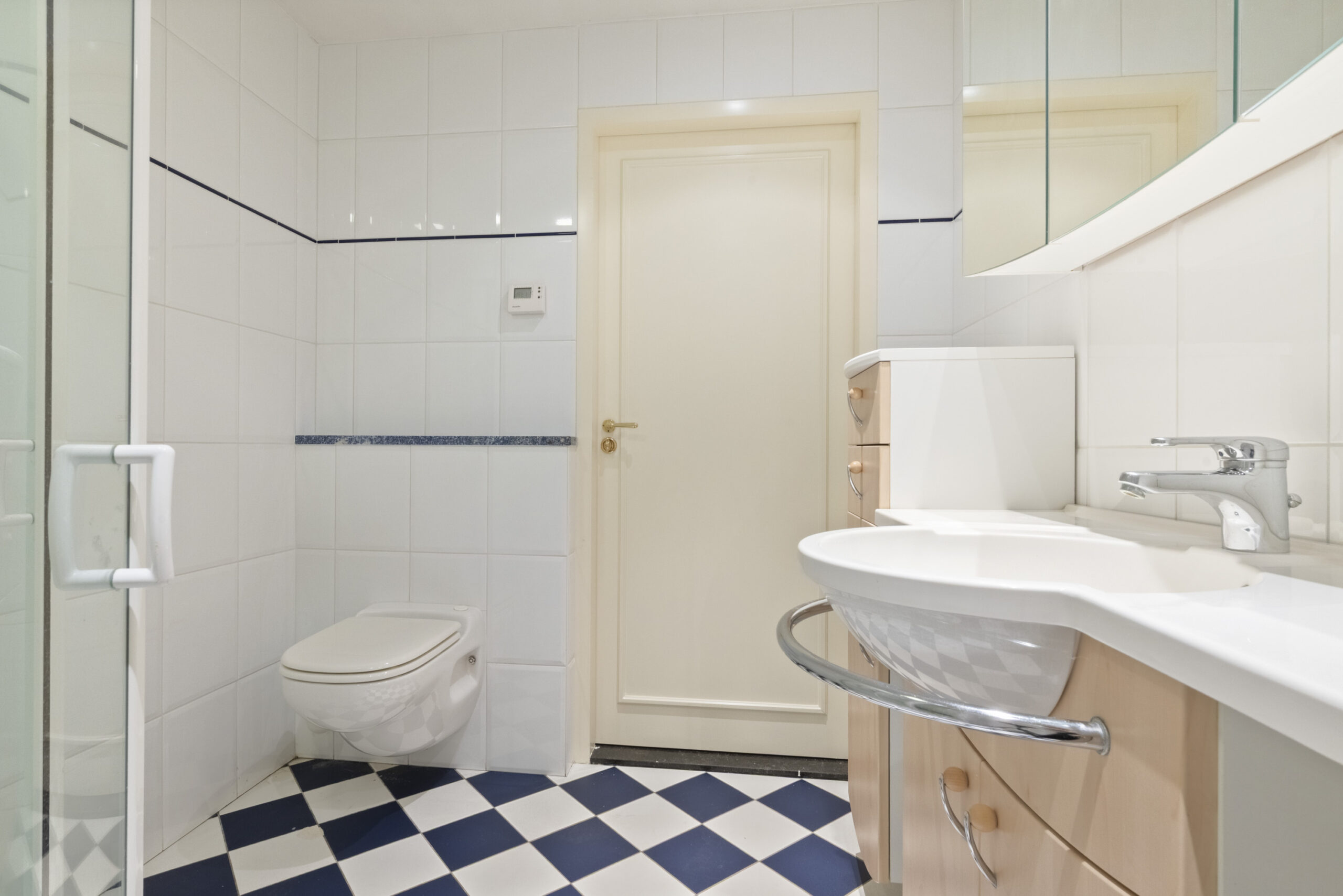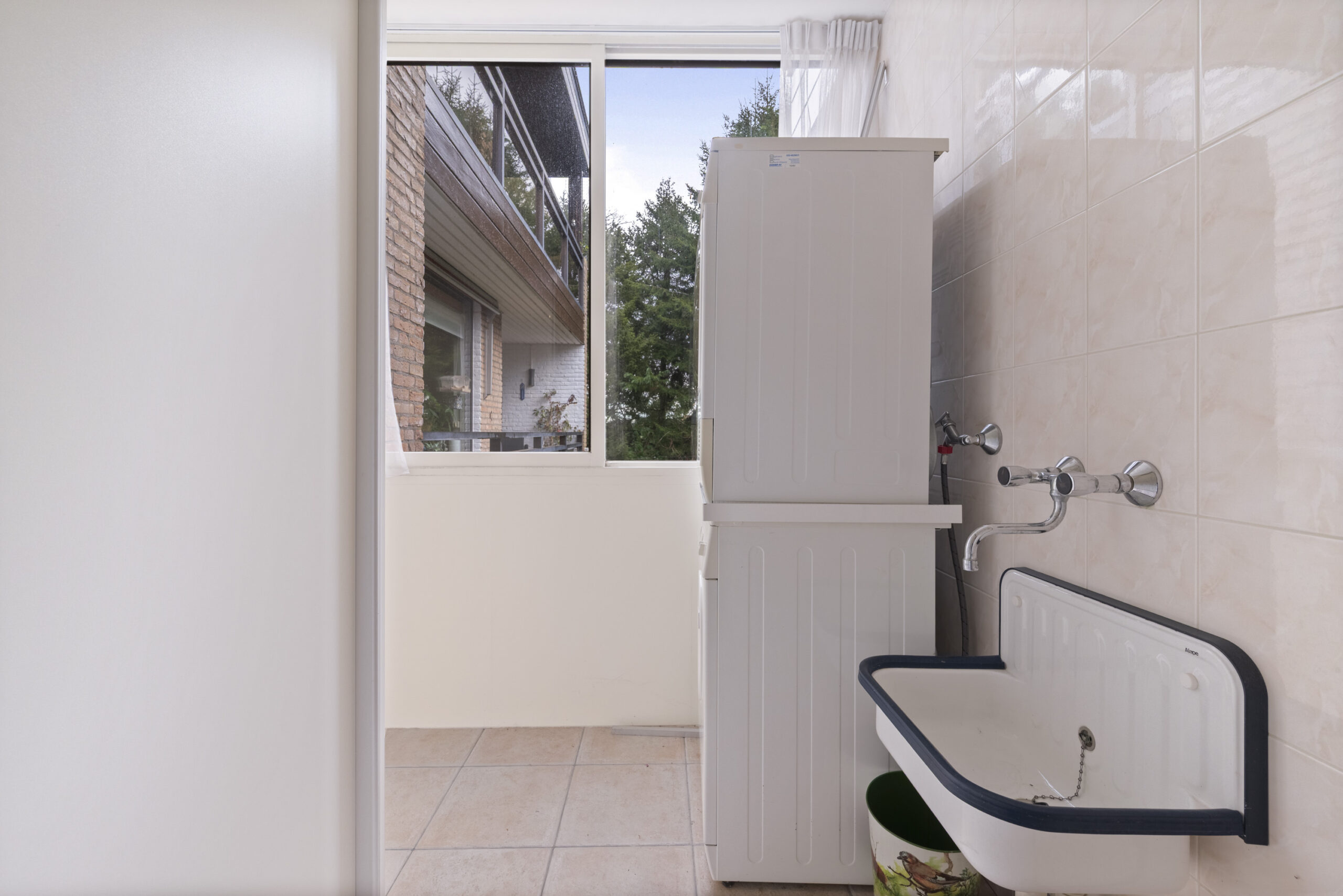 1e Verdieping: entree appartement, hal voorzien van garderobekast en modern zwevend toilet met fontein, lichte woonkamer met schuifpui naar zonnig terras (deels overdekt), moderne nette keuken voorzien van diverse inbouwapparatuur, bijkeuken met fontein, vaste kast en wasmachine-/droger aansluiting, 2 slaapkamers en een nette badkamer voorzien van douche, wastafelmeubel, zwevend toilet en vloerverwarming