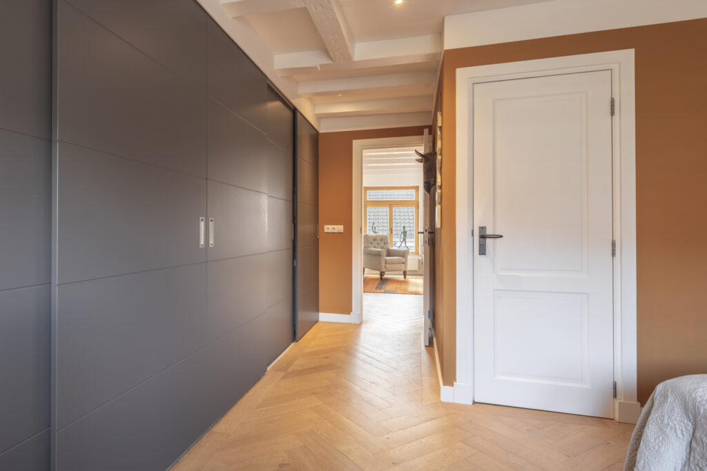 De bovenste verdieping telt nog twee slaapkamers, een separaat toilet en een apart fonteintje. Vanuit de overloop is de loggia bereikbaar waar u van de ochtend- en middagzon kunt genieten — een heerlijke plek om even tot rust te komen en te genieten van het uitzicht op historisch Weesp.