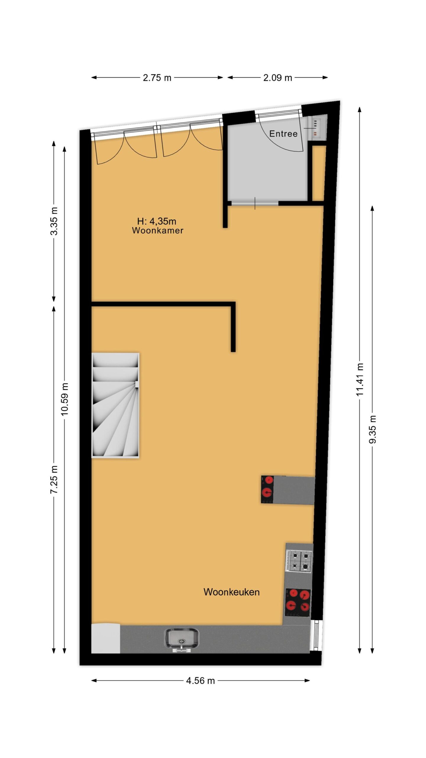• Uitzonderlijke plafondhoogte van ruim 4,50 meter in de woonkeuken