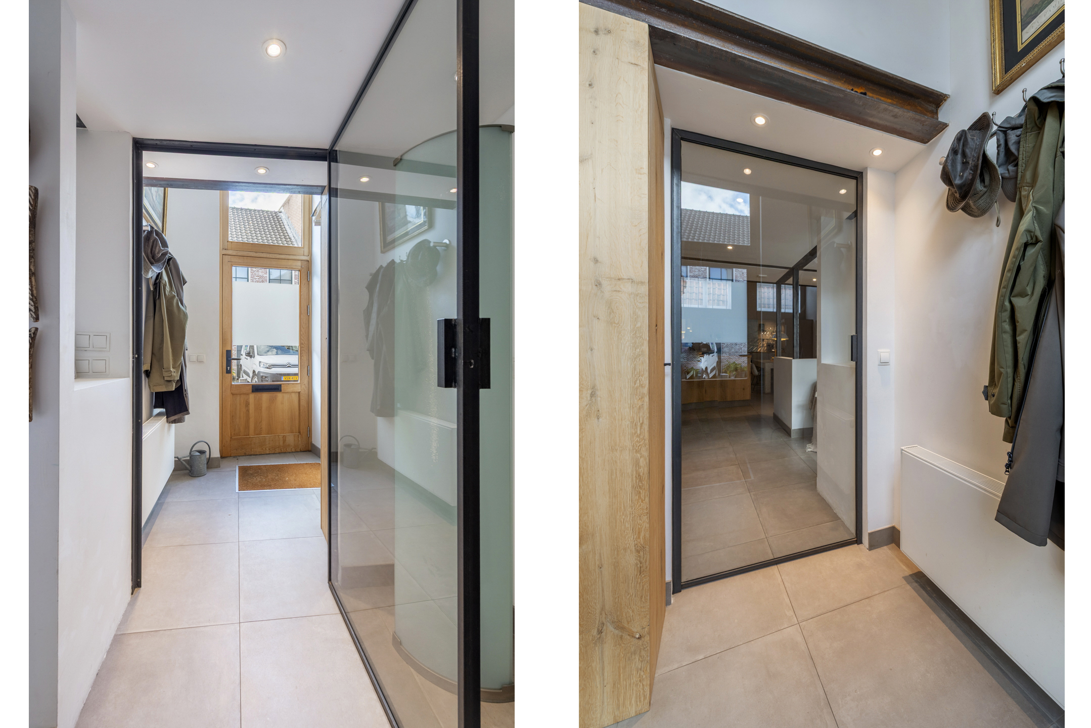De huidige bewoners hebben met liefde en oog voor detail gekozen voor hoogwaardige, natuurlijke en stijlvolle materialen. Door het consequent toepassen van eikenhout, staal en glas ademt het gehele huis een sfeer van rust en eenheid. Het pand geeft meerdere mogelijkheden om werk en wonen op een aantrekkelijke manier te combineren.