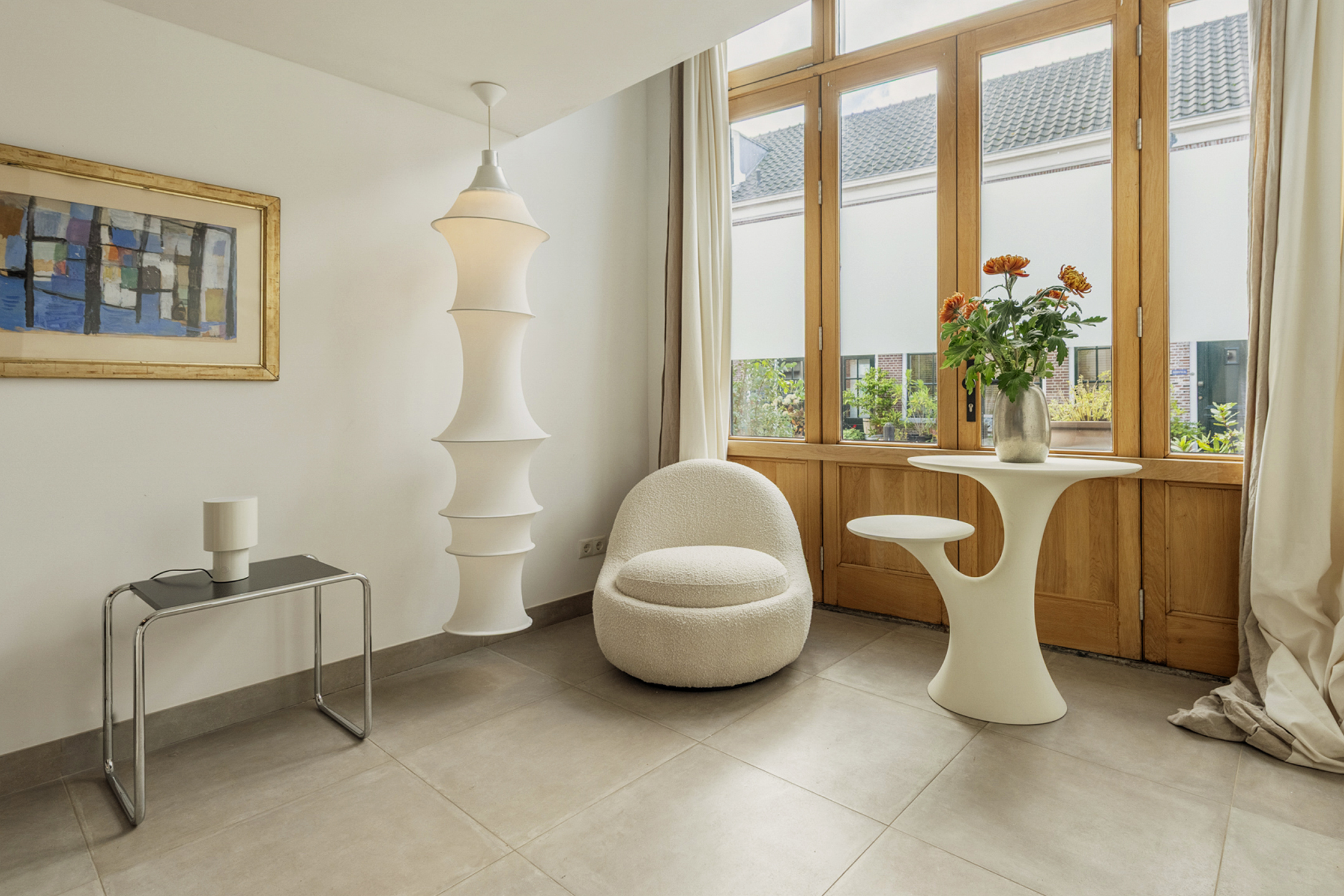 The top floor features two additional bedrooms, a separate toilet with washbasin, and access to a charming loggia, perfectly oriented for the morning and afternoon sun; an intimate retreat to enjoy the views over historic Weesp.