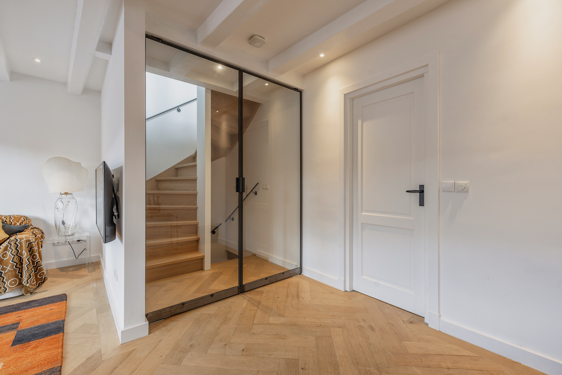 Behind the elegant, classic façade of this residence lies a surprisingly modern and light-filled home. Completely renovated and redesigned under architectural supervision in 2017/2018, the property now offers a perfect balance between historic character and contemporary living comfort. Every detail has been carefully considered, creating a warm yet refined aesthetic. The interior embraces an open, industrial design with high-quality materials and bespoke craftsmanship. Striking steel-framed doors, glass balustrades, exposed wooden beams and a beautiful oak staircase give the home a sense of understated luxury.