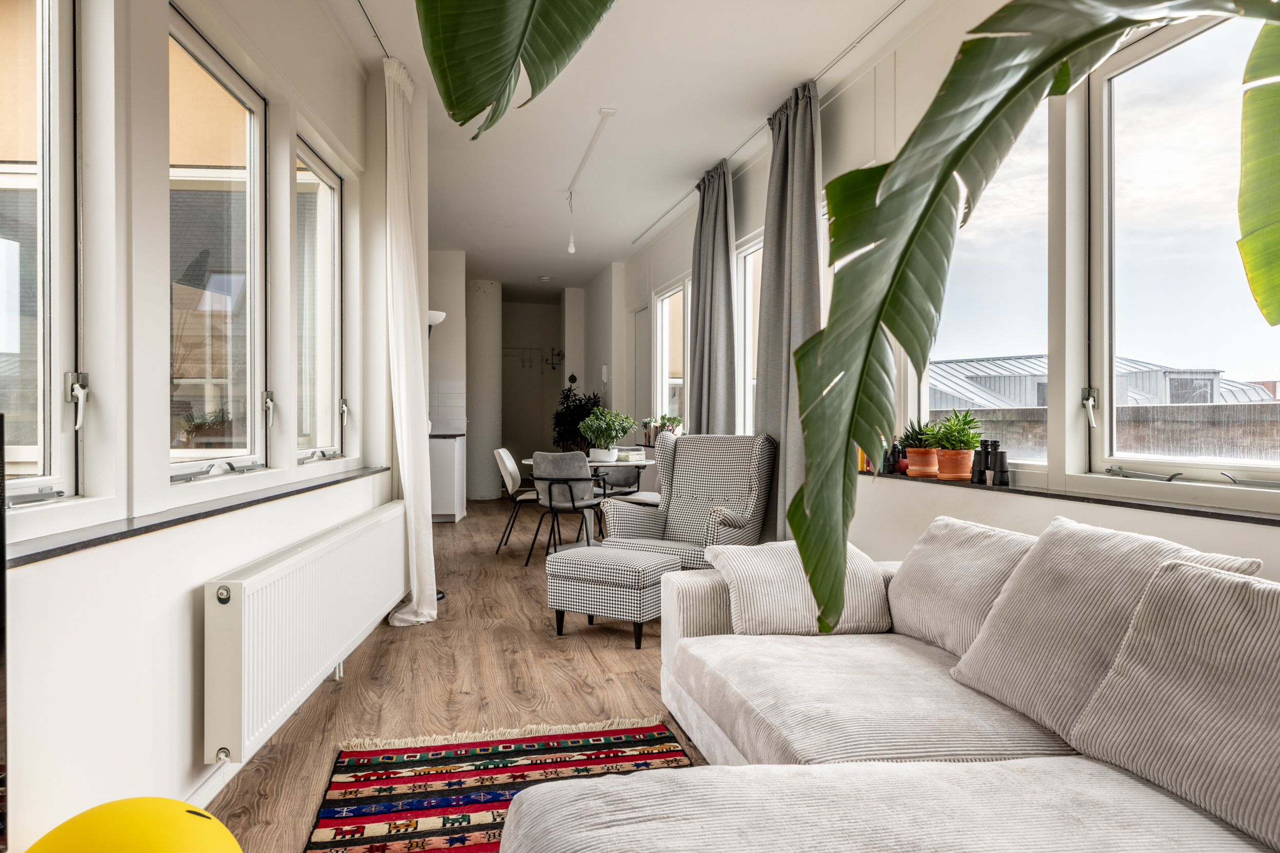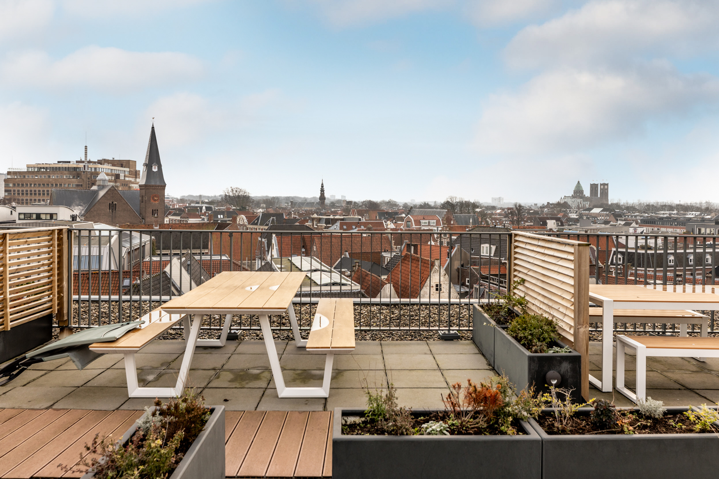 Een absoluut pluspunt is het riante privéterras op het westen. Met vrij uitzicht over de stad is dit een heerlijke plek om te borrelen, te dineren en tot laat van de avondzon te genieten – een zeldzame luxe midden in de stad. Als extraatje is er ook nog een gezamenlijk dakterras met een waanzinnig uitzicht over Haarlem.