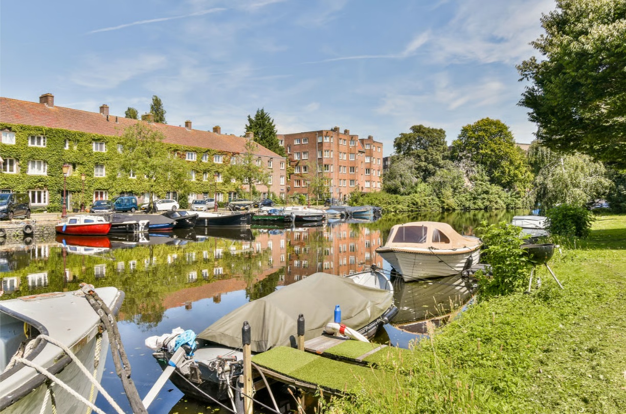 Public transport connections are excellent: Haarlemmermeerstation is only a 5-minute walk away, and Amsterdam Zuid station with numerous train and metro links can be reached within 5 minutes by bike. By car, this is also an ideal location, with the A10 motorway just minutes away. The city center, Amsterdamse Bos, and Vondelpark are all quickly accessible by bike. For daily groceries, a butcher, greengrocer, and Albert Heijn supermarket are conveniently located at the end of the street.