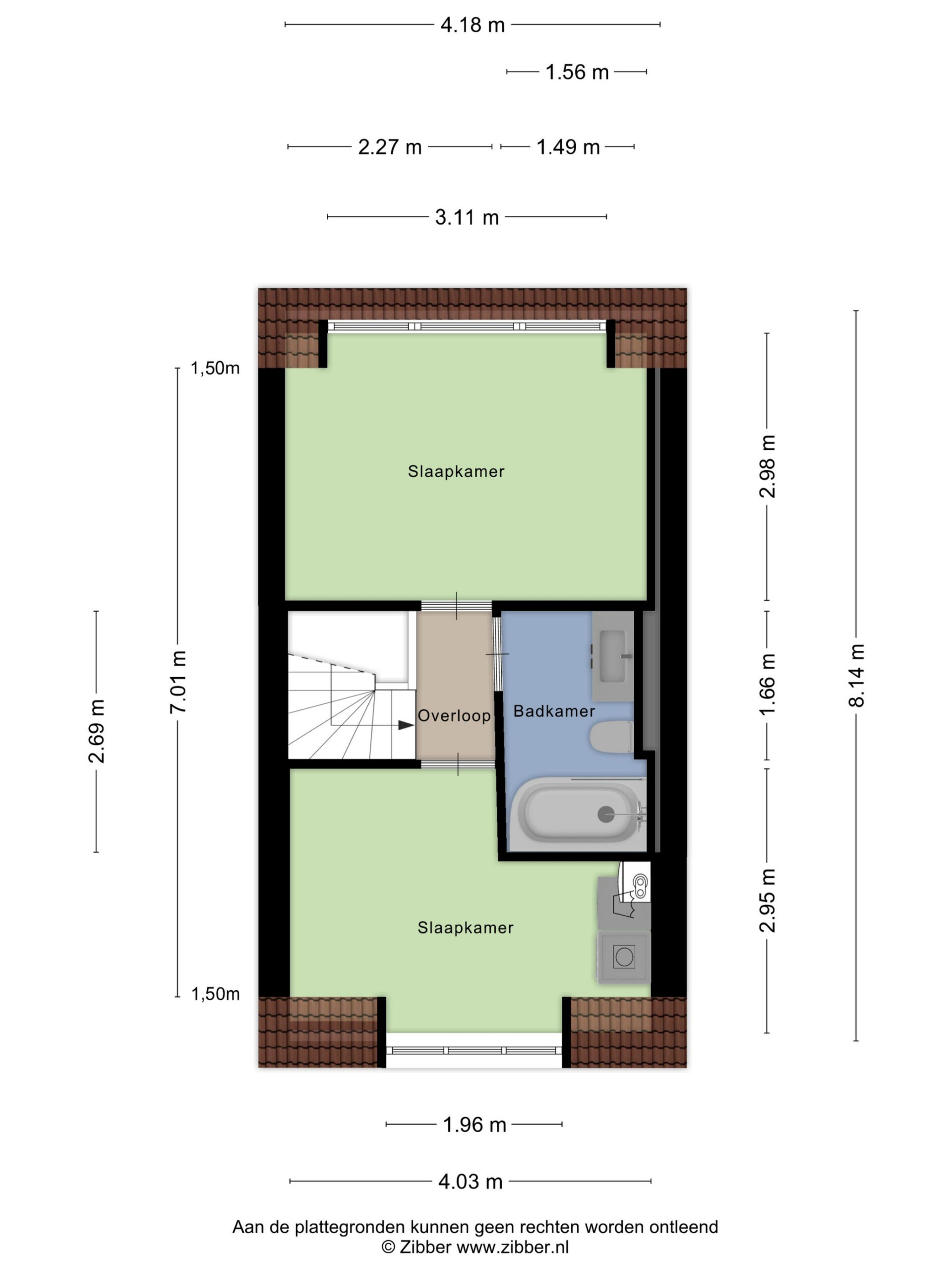 2e Verdieping: overloop, badkamer met ligbad, toilet en wastafelmeubel, slaapkamer achterzijde over de gehele breedte van het huis, slaapkamer aan voorzijde met aansluiting CV ketel en wasmachine droger opstelling